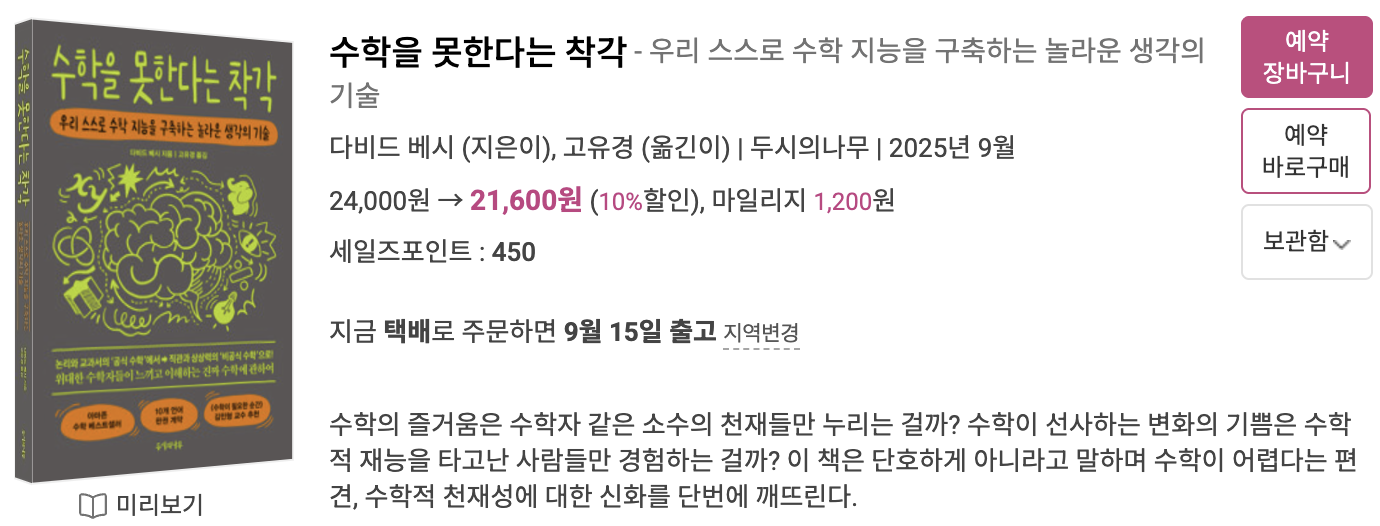 그래서 이 책의 소개글을 보고 마음이 끌렸나 봅니다. "수학의 즐거움은 수학자 같은 소수의 천재들만 누리는 걸까? (...) 이 책은 단호하게 아니라고 말하며 수학이 어렵다는 편견, 수학적 천재성에 대한 신화를 단번에 깨뜨린다." 수학이라면 치를 떨었던 저도 이 책을 읽으면 수학과 조금 친해질 수 있을지도 몰라요.