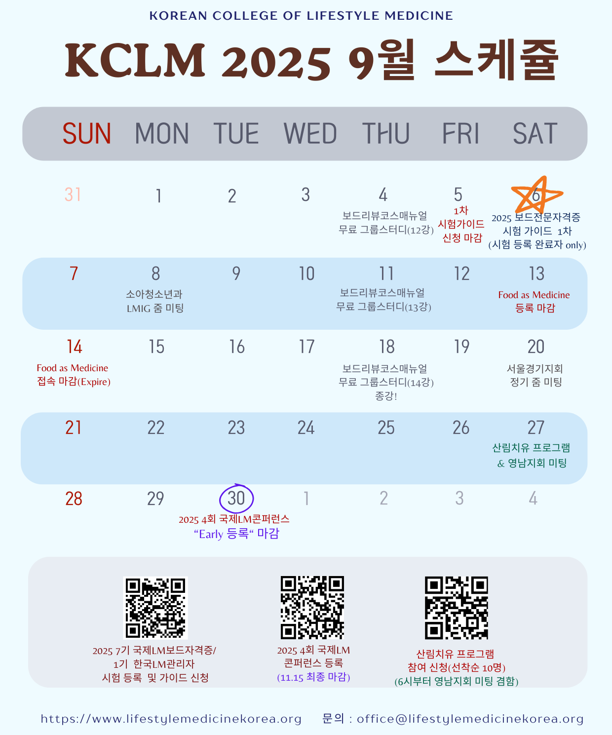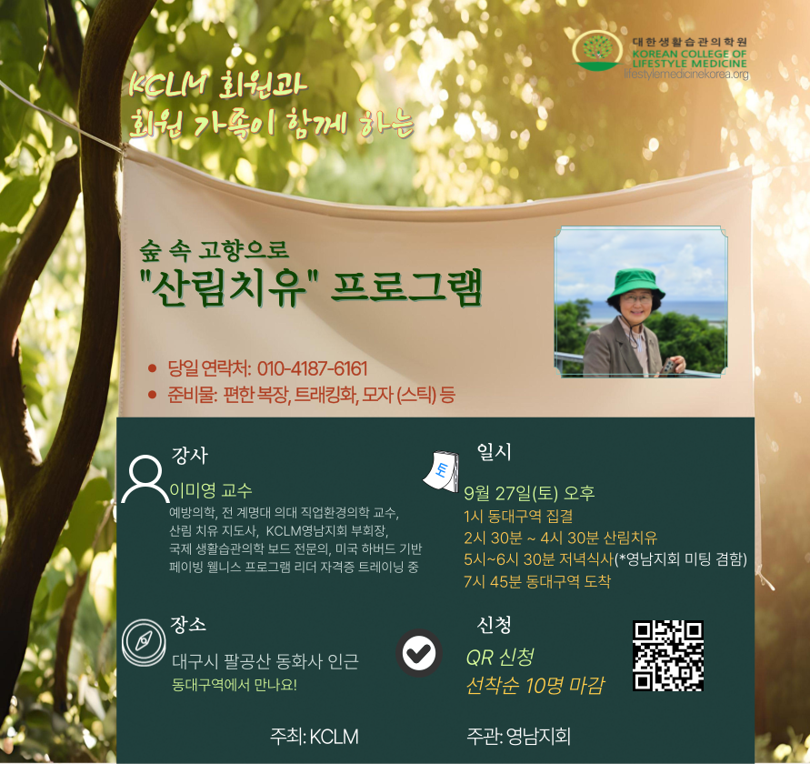 문의 KCLM 의학원 이메일 : office@lifestylemedicinekorea.org KCLM 의학원 관리국 황요순 국장(오픈채팅)
