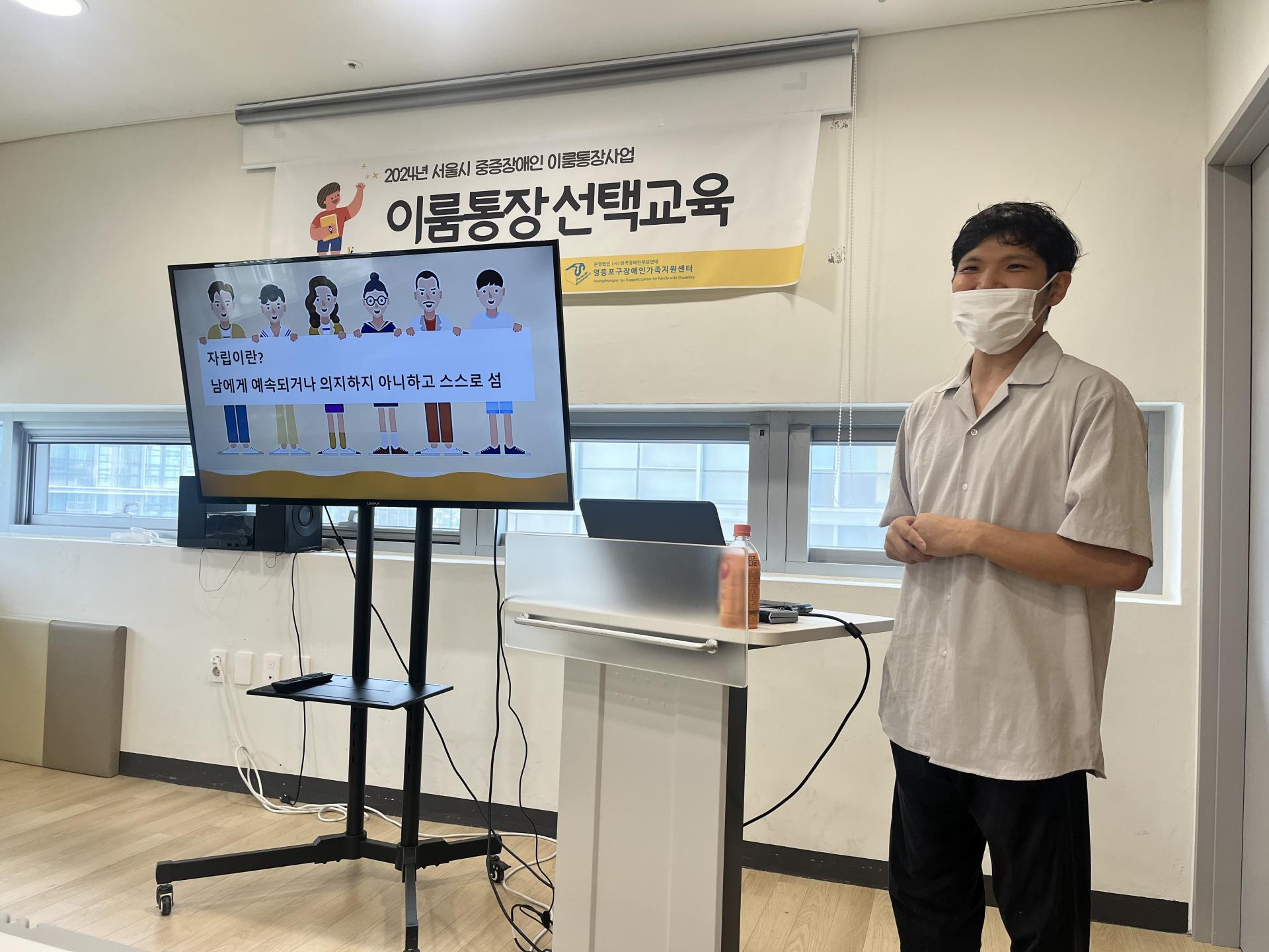 24년 서울시 중증장애인 이룸통장사업 선택교육의 일환으로 '자립지원 준비 및 주거복지 교육'을 진행하였습니다. 발달장애인 당사자이자 먼저 자립을 경험한 류승철 강사님의 자립 노하우와 관련 정보를 살펴보며 '스스로' 서기 위해 '함께' 노력하는 방법을 배울 수 있었습니다.