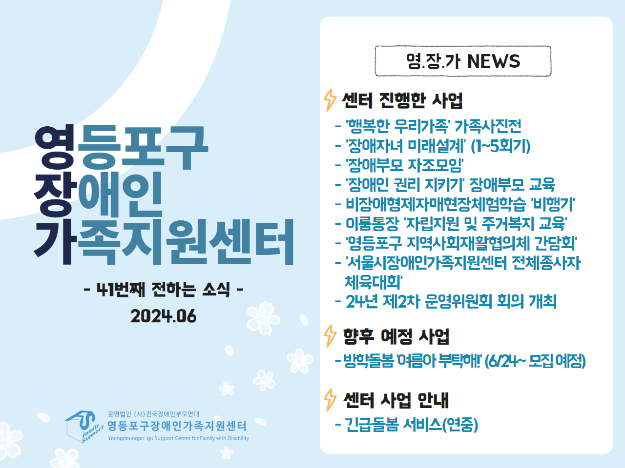 영등포구장애인가족지원센터 6월 뉴스레터는 여기까지 입니다.