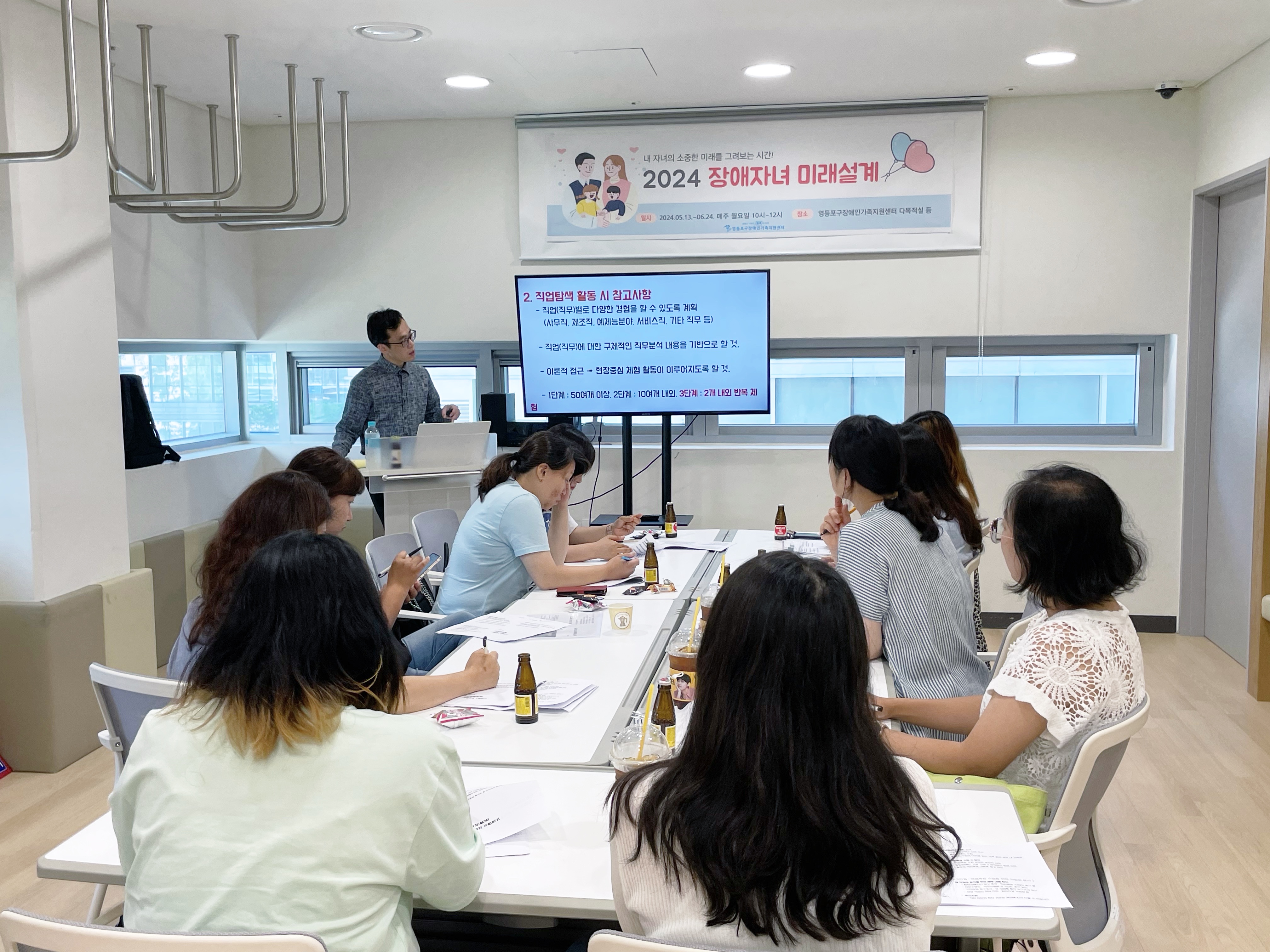 '내 장애자녀의 권리 지키기'를 주제로 장애부모 교육을 2회기 간 진행하였습니다. 다양한 사례를 통해 일상생활 속에서 침해될 수 있는 내 장애자녀의 권리를 보호하고 이를 올바르게 대처하는 방법에 대해 숙지할 수 있었습니다.