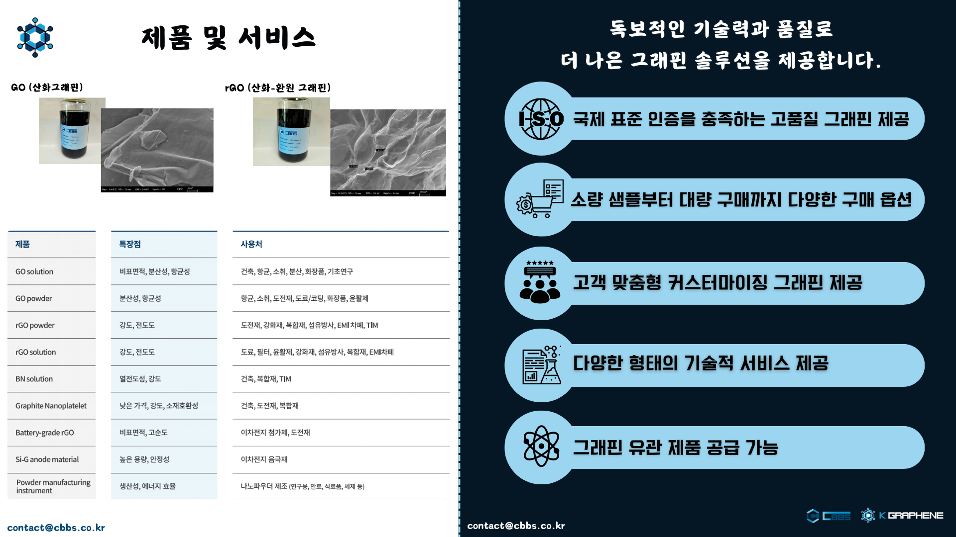 A: 저희 씨이비비과학은 10년 이상의 연구와 사업화 경험을 바탕으로 고품질 그래핀을 제공합니다.