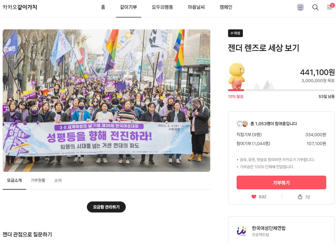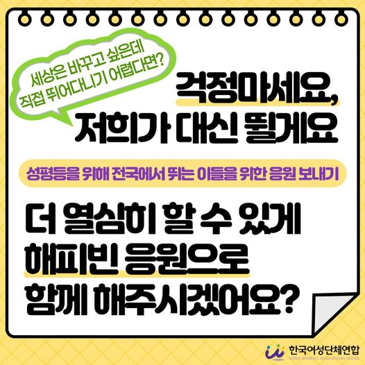 [해피빈 모금함] 바로 이 사람들이 성평등을 위해 전국에서 뛰고 있습니다