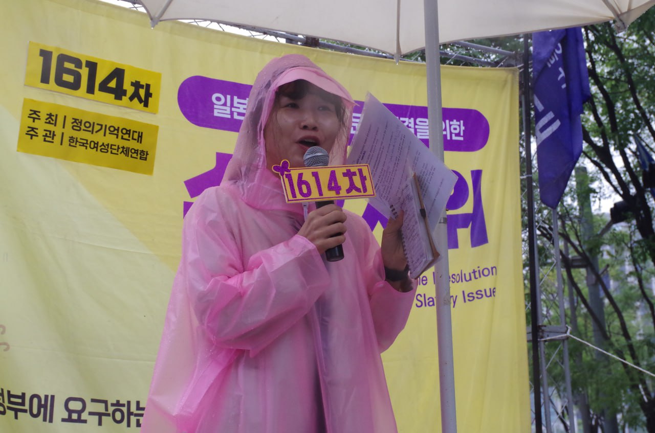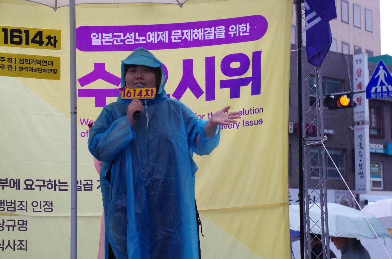 9월 20일(수) 낮 12시 주한 일본대사관 평화로 앞에서는 제1614차 일본군성노예제 문제해결을 위한 정기 수요시위가 열렸습니다. 여성연합이 주관한 이 날 수요시위는 비가 오는 궂은 날씨와 역사부정 세력의 방해에도 불구하고 국내외 시민들의 연대가 빛나는 자리였습니다.