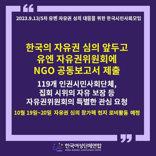 한국의 자유권 심의 앞두고 유엔 자유권위원회에 NGO 공동보고서 제출 |