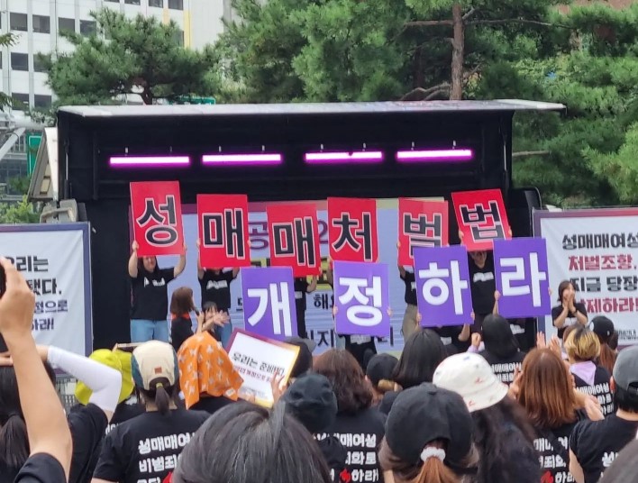 9월 19일(화) 오후 1시 서울 종각역 보신각 앞에서 성매매여성 불처벌, 성매매처벌법 개정 촉구 공동행동이 주최하는 성착취 카르텔 해체, 이제는 성평등모델! 집회가 열렸습니다. 전국에서 모인 200여명의 활동가들은 성착취 카르텔 해체를 외치며 성평등 모델을 요구했습니다. 성매매를 여성에 대한 폭력으로 보면서도 성매매 여성을 ‘자발적’ 성매매 행위자와 성매매 피해자로 구분하고 성매매여성 처벌 조항을 남겨둔 '성매매방지법'은 처음부터 반쪽짜리였습니다. 성매매 여성을 처벌하는 성매매처벌법 지금 당장 개정해야 합니다.