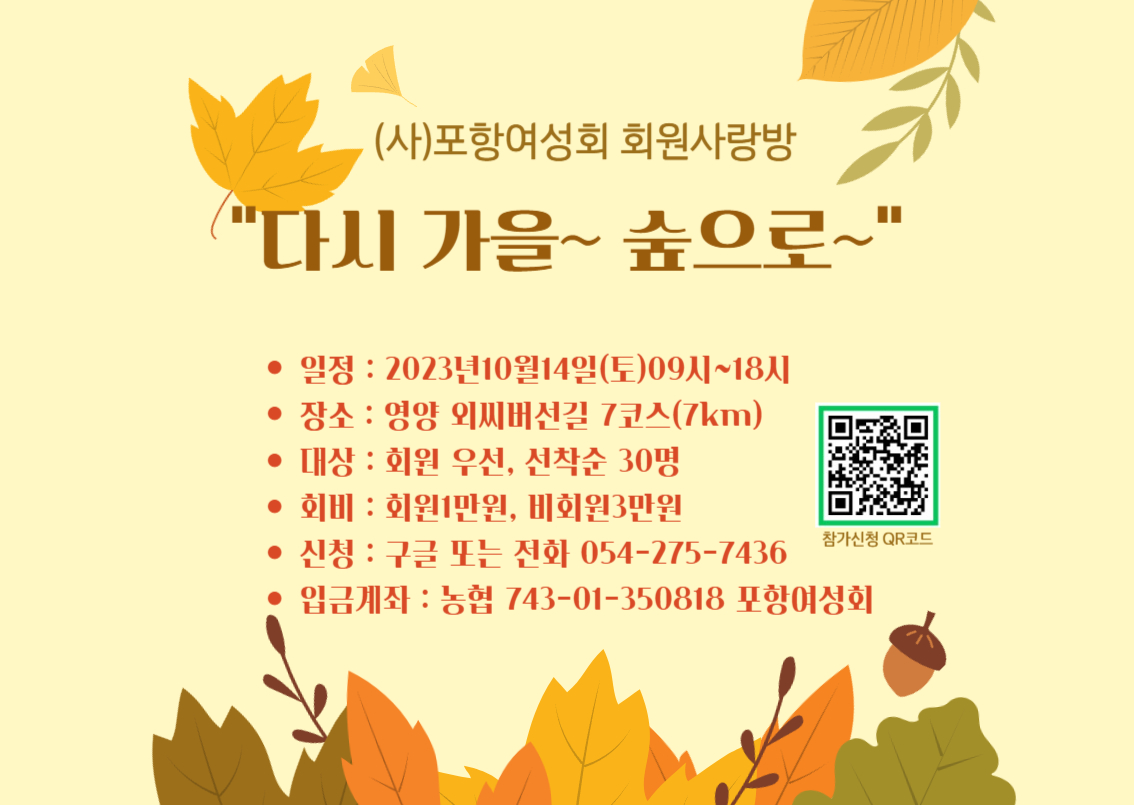 📌 대상 : 포항여성회 회원우선, 선착순30명