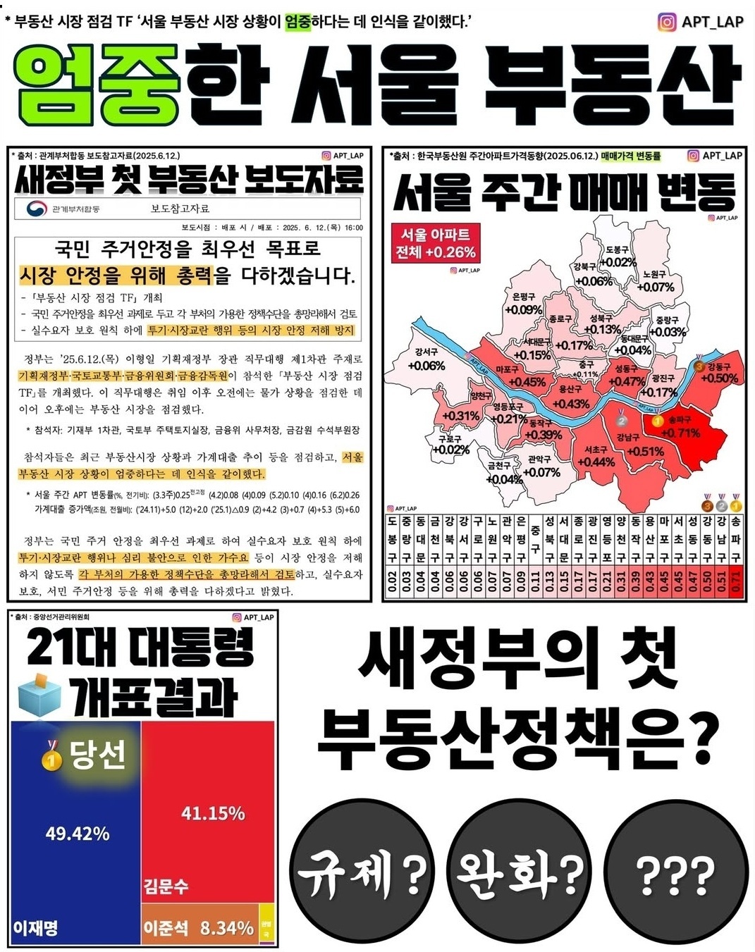 이 대통령의 부동산 공약은 △주택공급 확대 △규제완화 △공공성 유지로 정리됩니다. 하지만 공사비 고공행진, 도심 주택부족, 세계 관세전쟁 여파 등 악재들이 즐비한 상황에서 해법을 마련하기란 결코 쉽지 않은 일이죠. 관련 뉴스들을 소개합니다.