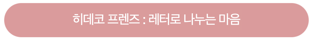 히데코레터를 함께 보고 싶은 친구에게 추천해주세요! (아래 버튼 클릭 후 링크를 공유해주시면 됩니다) |