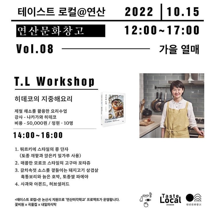 논산의 연산 문화창고에서 <지중해 요리 교실>을 진행합니다! “선생님 요즘 '동에 번쩍 서에 번쩍' 너무 바쁘신 것 아닌가요?!” 논산에 간다고 하니 전해 들은 인사입니다. 제가 좋아하는 한국어 표현이에요. '동에 번쩍 서에 번쩍', 음식으로 여러분께 계속 찾아가겠습니다! |