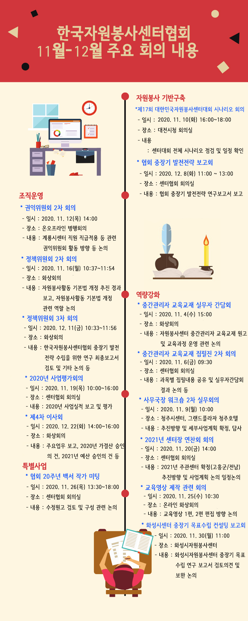 - 설문결과 : 자세히 보러가기 ☜ 클릭! - 응답센터 : 65개 센터 - 참고사항 : 협회 홈페이지에서 다운가능 ![]() [MOU 체결 이용 혜택 안내] *단체 혜택도 가능합니다. - 대상 : 회원센터 관리자 및 자원봉사자 - 혜택 기관 : (주)강원랜드 하이원리조트 및 더케이호텔리조트 - 할인율 : 정상객실료 대비 10~82% (성수기 및 비수기 할인율 상이) - 이용방법 : 사원증 혹은 명함 제시(센터관리자) / 자원봉사인증확인서(자원봉사자) - 문의사항 : 이희범 주임(02-715-8008)
