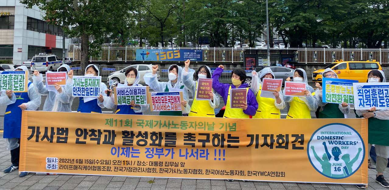 - 2022년 6월 16일은 제11회 국제가사노동자의날입니다. 이날을 기해 「가사근로자고용개선등에 관한 법률」이 시행됩니다. 허나 애초부터 공익적 제공기관 육성 등에 관한 내용이 삭제된 채 법이 통과되어 문제를 내포하고 있었고, 정부의 시행령 안 역시 여러 우려점이 제기되고 있습니다. 이에 가사노동자가 안심하고 안전하게 일할 수 있고, 고객들도 안심하고 가사노동을 이용할 수 있는 방안에 대한 현장을 목소리를 전달하고자 합니다.