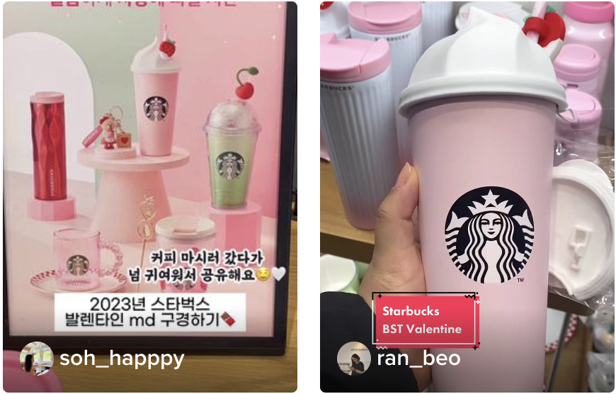 스타벅스 매장 한 켠에 발렌타인을 맞아 핑크핑크한 MD상품이 출시되었는데요!💗 딸기 시즌인 요즘에 딱 맞는 컬러인 핑크라 그런지 눈을 뗄 수가 없을 정도입니다👀