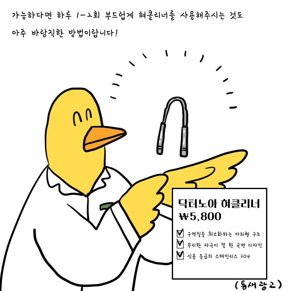 가능하다면 하루 1-2회 부드럽게 혀클리너를 사용해주시는 것도 아주 바람직한 방법이랍니다! 둘째, 수분 섭취! 입안이 건조해지면 설태가 더 많이 생기기 때문에 매시간 수분 섭취를 잊지 않고 해주시는 것도 입냄새를 예방하는 데 효과적이에요.