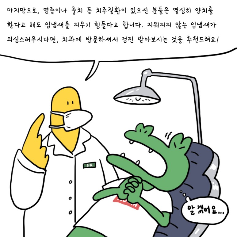 6호 "마스크 속 입냄새 제거 대작전!" 안녕하세요! 닥터노아입니다! 안녕하세요 놔놔여러분! 코로나가 세상에 등장한 지 1년이 다 되어 가네요! 마스크를 매일 쓰고 나가는 게 습관이 된 지금, 많은 사람이 마스크 속에서 맴 도는 '입냄새'로 고통받고 있습니다!