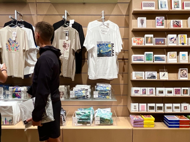 모마의 전시는 보지 못해도 디자인 스토어만은 꼭 들른다는 사람이 많을 만큼 큰 인기를 자랑하는 곳이다. 브라운 Braun, 아르텍 Artek 등 다양한 디자인 오브제를 만날 수 있고, 전시장에서 본 작품을 핀이나 엽서 같은 굿즈로 소장할 수 있어 늘 방문객으로 붐빈다. 앙리 마티스 Henri Matisse, 폴 고갱 Paul Gauguin 등 거장들의 아트워크가 프린트된 유니클로 UT도 만날 수 있다. 모마 UT 컬렉션은 매 시즌 새로운 작품과 협업하기 때문에 계절마다 하나씩 모아가는 즐거움을 준다.