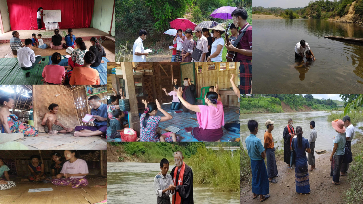 작년에 한달 훈련을 마친 현지 사역자들은 양곤의 버미스 종족 (N목사, P, B, D, T 사역자), 라카인주의 라카인 종족 (M목사팀 5개 교회), 몬주의 몬종족 (Y 사역자), 요종족 (K사역자) 등을 대상으로 종족개척사역을 펼치고 있습니다. 내전 속에서 매우 위험하고 열악한 환경 속에서 목숨을 걸고 복음을 전하면서 헌신하는 현지 사역자들을 위해 많은 기도를 부탁드립니다.