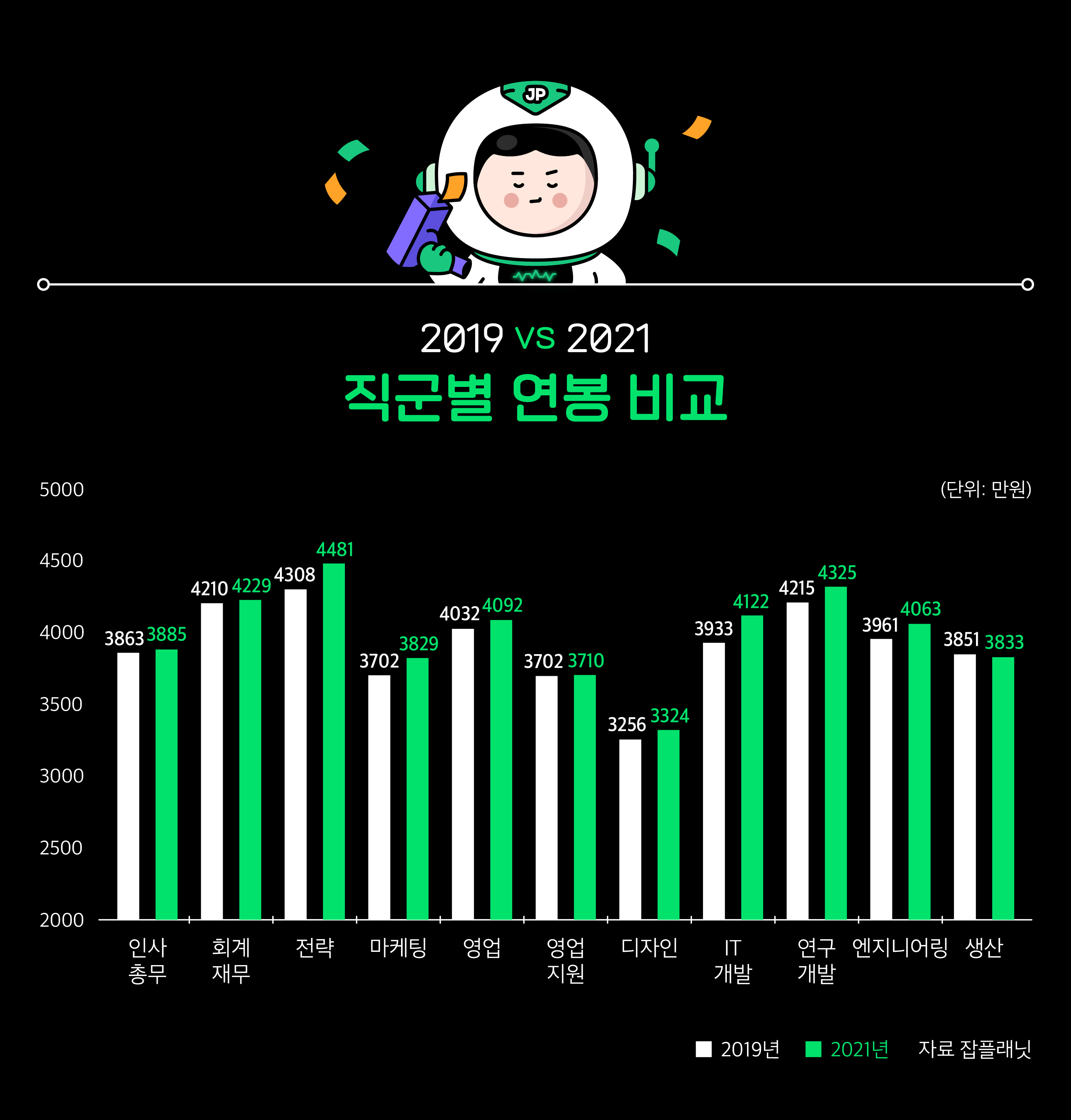 , ์ธ์ฌ, ๋์์ธ, IT ๊ฐ๋ฐ ๋ฑ ์ด๋ค ์ง๊ตฐ์ ์ฐ๋ด์ด ๊ฐ์ฅ ๋์๊น์? ์ญ์ ๊ฐ๋ฐ ์ง๊ตฐ์ผ๊น์? |