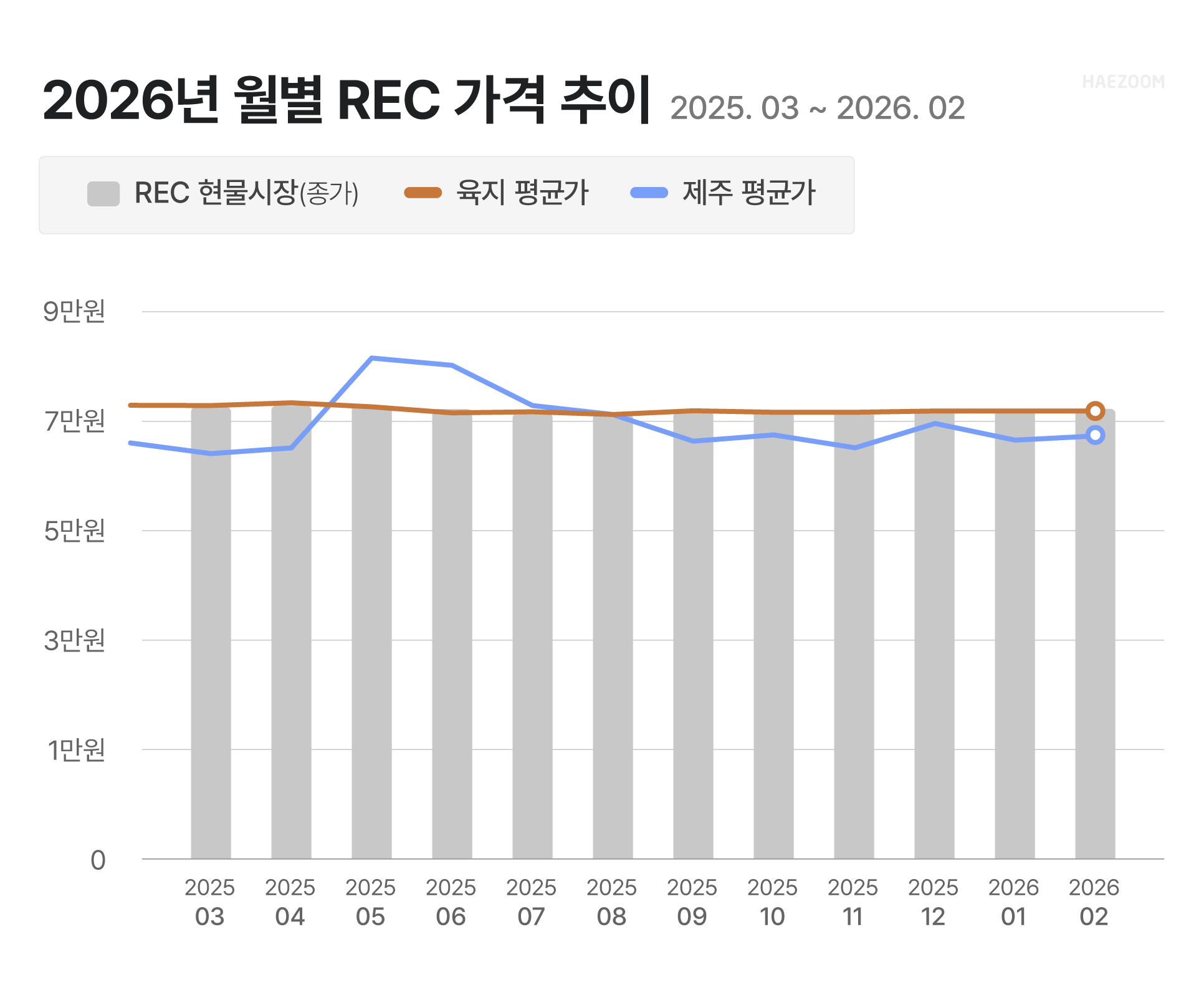 3월 REC도 하락 추세가 계속될지, 현재 수준의 가격대를 유지할지 지켜보아야 할 것 같습니다.