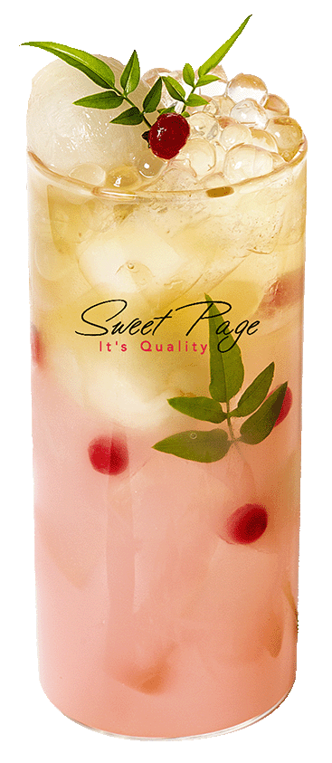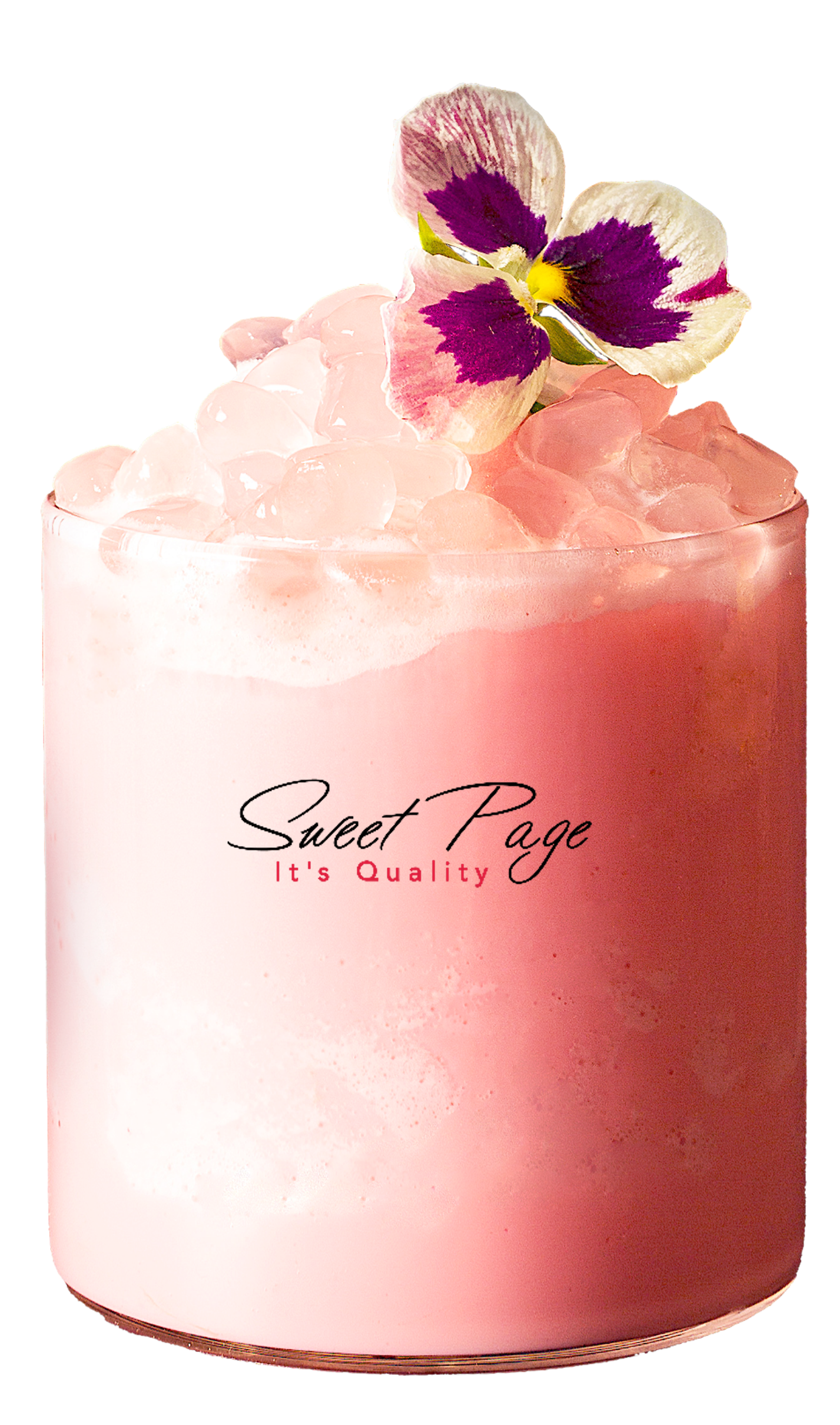 ① 블렌더 볼에 우유 150ml, 스위트페이지 핑크블러섬 25g, 스포트 복숭아향 시럽20ml(2pump), 얼음 250g을 넣고 블렌딩한다.