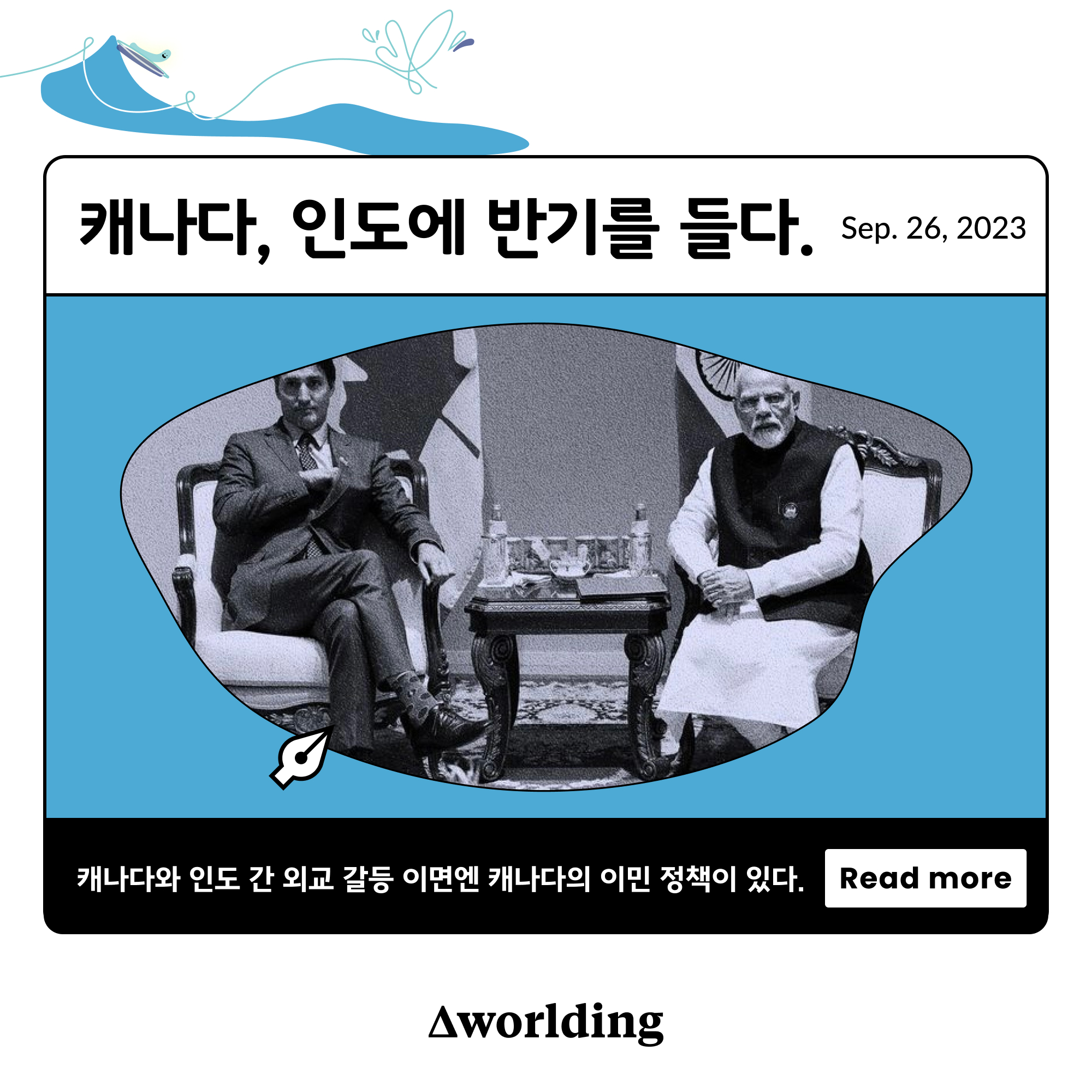 - 이민을 온 국가(캐나다)와 이민을 오기 전 본국(인도) 간의 외교적 갈등으로 번집니다.