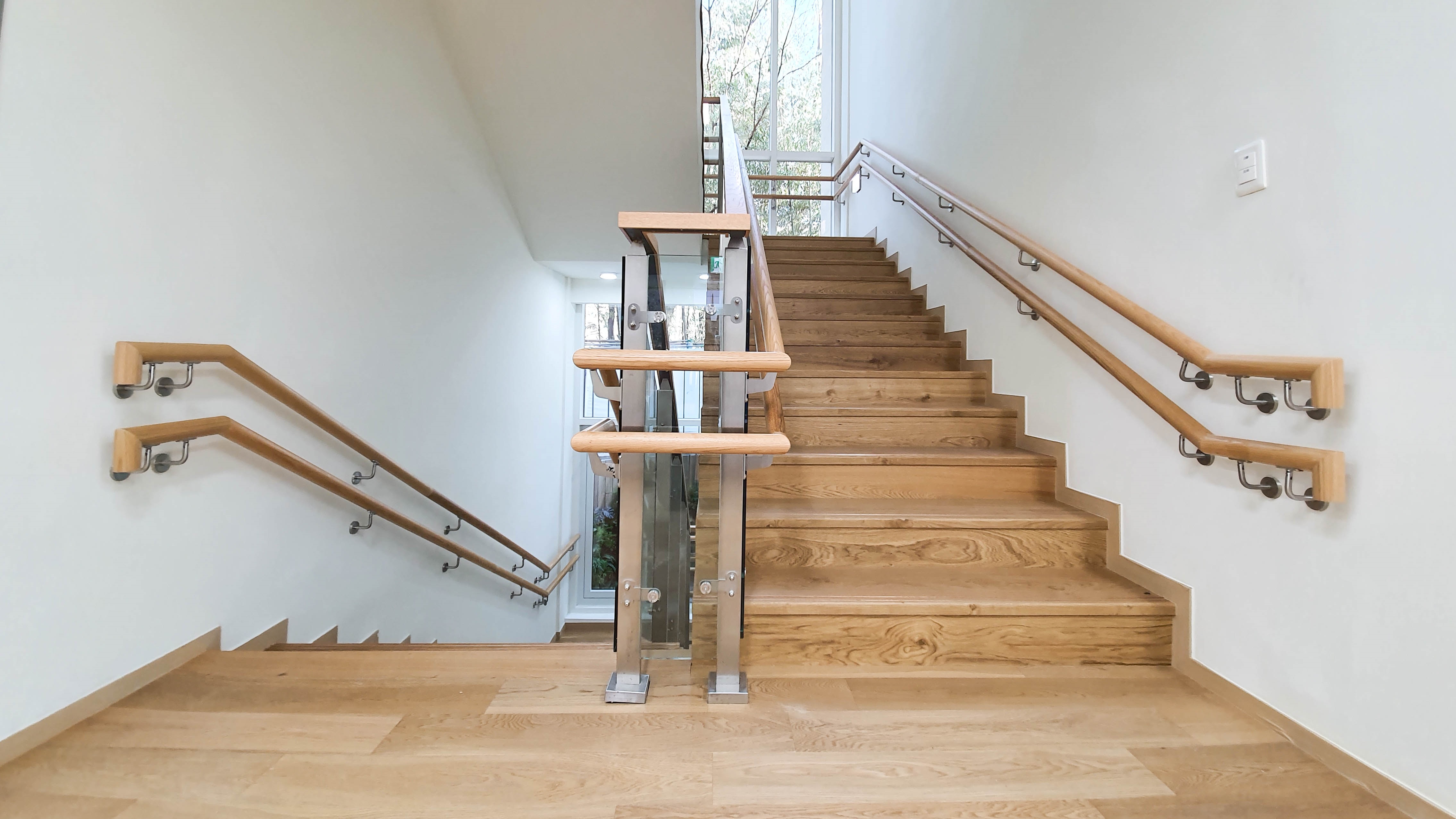 원목 손스침 대부분 원목계단재와 함께 시공하는 것이 원목손스침(핸드레일) 입니다. 원목손스침은 계단 이용 시 낙상이나 미끄러짐을 방지하기 위한 안전의 용도로 또 보행에 도움을 주기 위한 용도로 설치하는 계단 난간 장치로 난간을 어떤 디자인으로 설계하는 가에 따라 그 모양이 다양합니다.