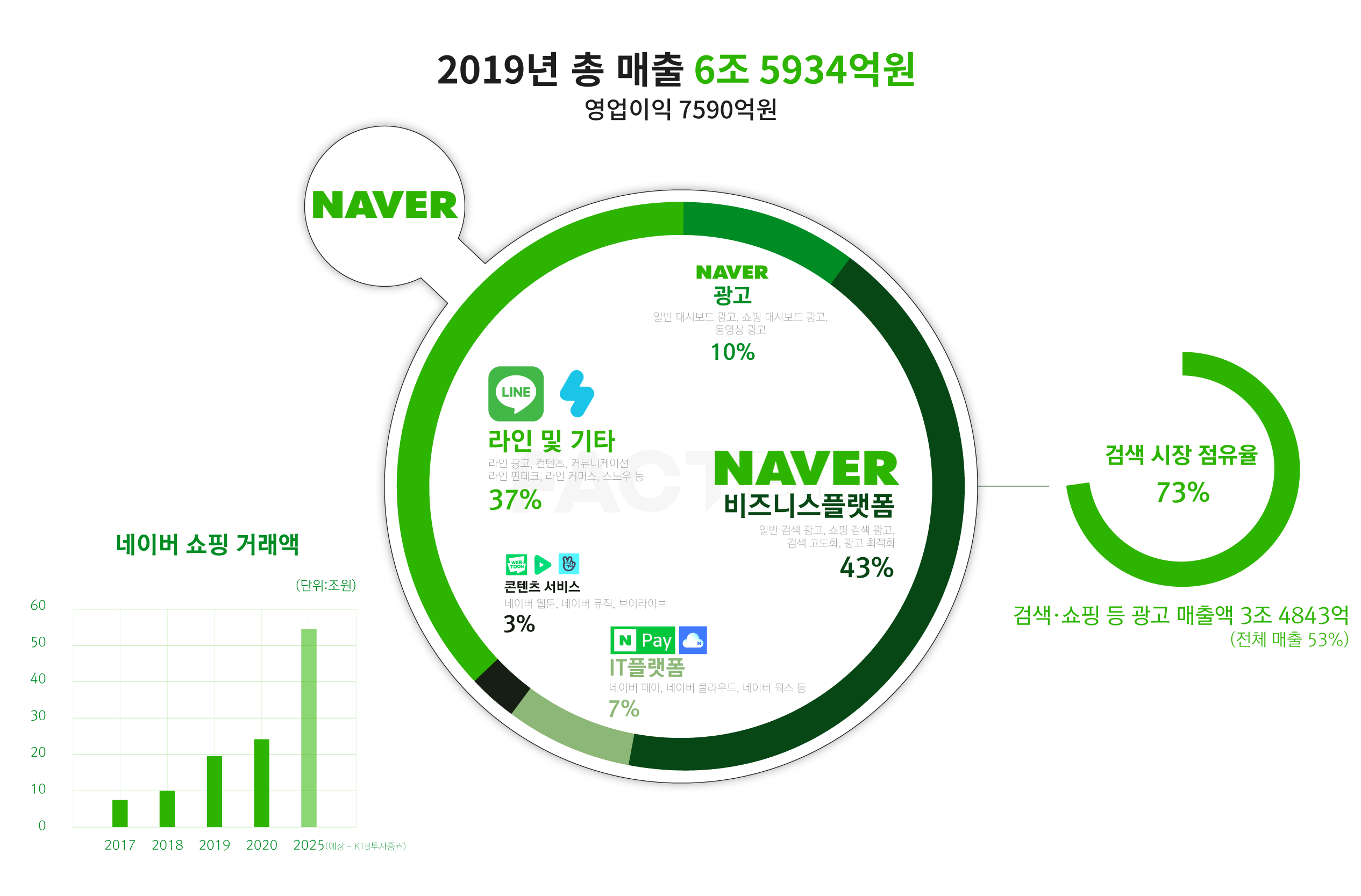 님, 안녕하세요. 미래를 검증하는 팩플레터입니다. 이번주엔 ‘네이버의 시장 확장’을 둘러싼 논란(혹은 기대)을 살펴봤습니다. 3년 전이었죠. 네이버의 금융 빅픽쳐가 드러난 시점이요. 2017년 6월 26일, 이해진 네이버 최고투자책임자(GIO)와 박현주 미래에셋그룹 회장이 1조원 규모의 상호지분 투자를 발표했습니다. 성공한 두 창업자의 머릿 속엔 지금의 ‘네이버파이낸셜(NF)’이 있었을 겁니다. 그후 3년새 네이버는 전통시장 상인부터 유통대기업까지 다 입점한 국내 최대 온라인 쇼핑몰(2019년 거래규모 21조원, 와이즈앱 추정치)이 됐고, 미래에셋은 NF에 8000억원을 투자했습니다. 디지털 경제에서 돈이 흐르는 길목을 만든 것입니다. 그래서 요즘 금융권에선 이들 네이버 연합군이 경계 대상입니다. 네이버쇼핑 데이터로 중소상공인의 신용도를 평가하고 대출 상품을 팔겠다는 NF의 발표나 네이버통장(CMA), 자동차보험 중개 진출 등 금융권엔 위협적인 소식이 쏟아집니다. 처음 보는 장면은 아닙니다. 네이버가 신사업을 추가할 때마다 전통 산업은 고전했지만, 소비자들은 대체로 네이버 서비스를 반겼지요. 지금도 견제구가 들어오면 네이버는 늘 “소상공인과 소비자를 '연결하는 플랫폼' 역할에 충실하겠다”고 강조합니다. 그런데 거침없는 네이버의 확장, 어디까지 괜찮고 어디부터 걱정해야하는 걸까요? 글로벌 빅테크의 독과점에 맞설 기술기업 필요하고, 데이터 기반의 디지털 경제도 육성해야 하긴 합니다. 그럼에도 네이버에 집중되는 데이터ㆍ기술 권력의 파급효과도 따져봐야 합니다. 여러분의 생각이 궁금합니다. ㆍ
