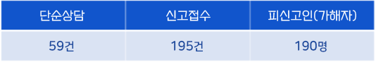 * 피신고인(가해자)은 동일인에 대해서는 한 번만 집계합니다. |