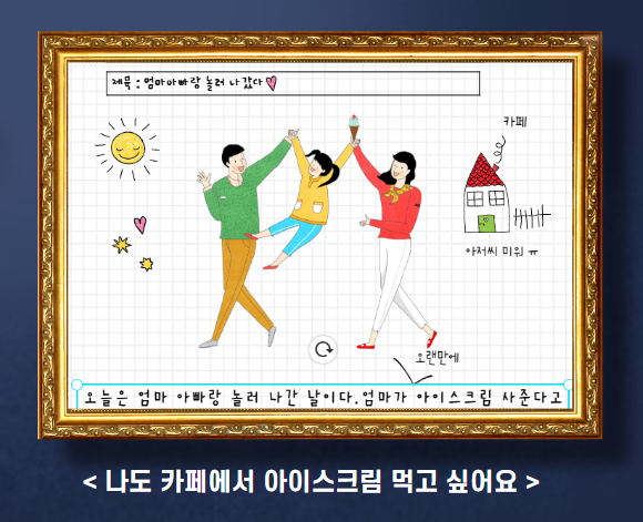 <나도 카페에서 아이스크림 먹고 싶어요>는 가족과 카페 방문시 어린이라는 이유로 방문을 거절당한 한 아이의 비탄한 심정을 담아낸 작품입니다. 독자분들께도 슬픔이 전해질 것 같은데요.