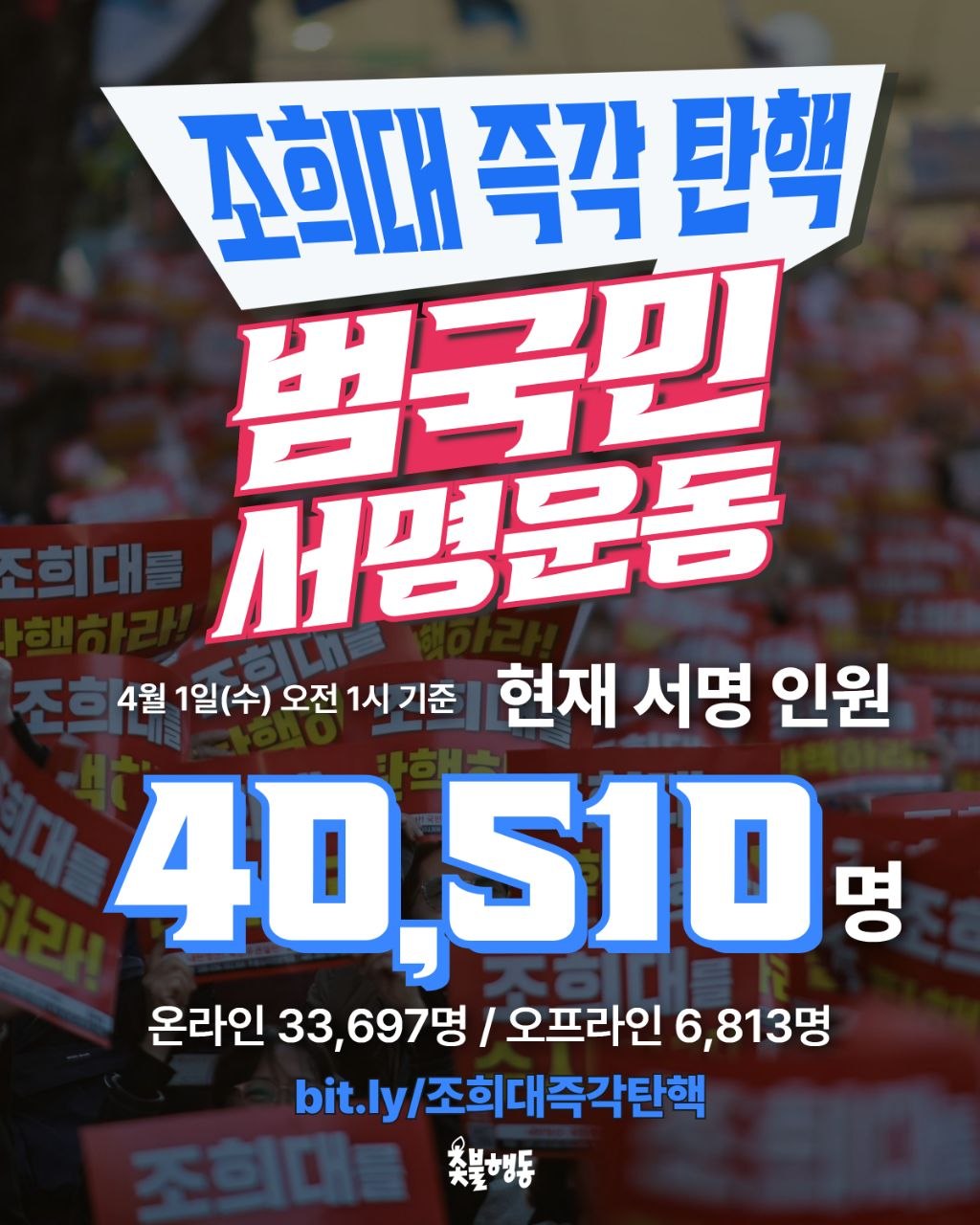 ✅ 현재 40,510명 동참(4월 1일 오전 1시 기준) - 온라인 33,697명 - 오프라인 6,813명