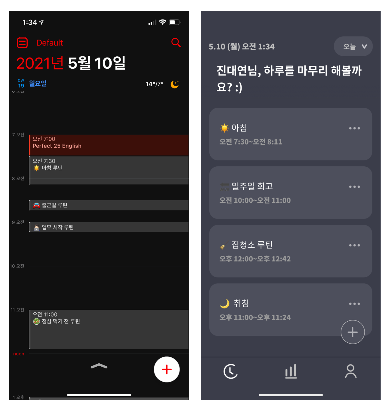 우선, 탁상캘린더와 시계는 책상에 상시 비치되어 어떤 업무를 시작하기 위한 트리거 역할을 해줍니다. 미팅 시간을 알려주거나, 주요 업무 일정들을 미리 적어두고 적절한 시점에 그 업무를 진행할 수 있도록 도와줍니다. 저는 탁상캘린더와 시계를 대신하여, Fantastical과 Routinery를 사용합니다. 두 도구는 마치 늘 책상 위에 놓인 것처럼 저의 일상의 업무의 트리거가 되어, 내가 지금 해야 하는 일을 알려주는 중요한 도구가 됩니다.