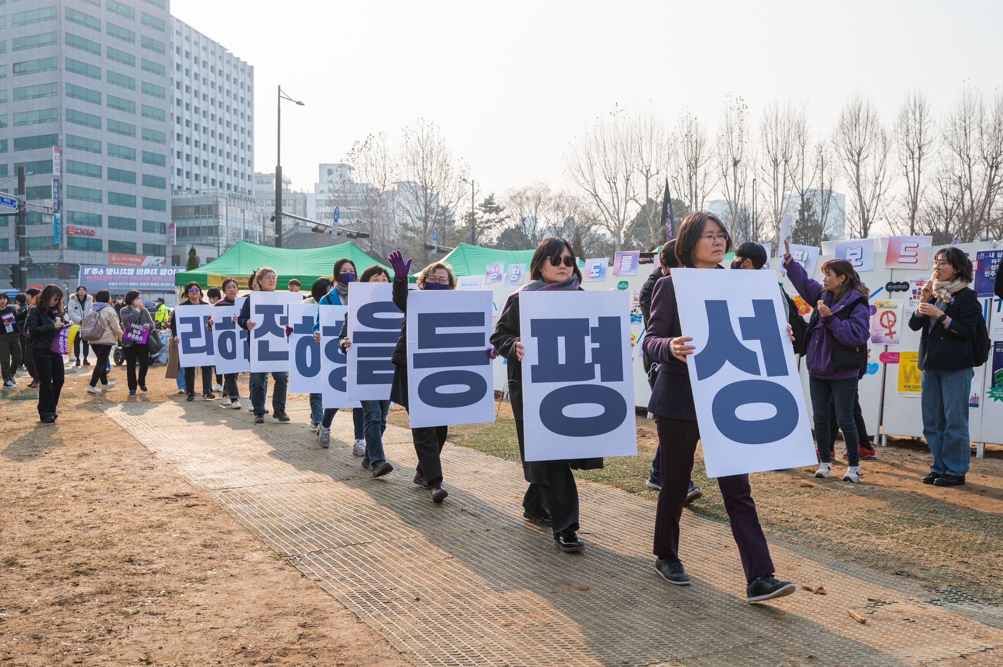 서울광장, 광화문 사거리, 종각, 을지로 입구로 이어진 행진 이후에는 참여자 모두가 흥겹게 춤을 추면서 성평등 사회로의 다짐을 나누었습니다. 사회 각 영역 퇴행의 시기에도 성평등 사회로의 여성‧시민들의 연대를 확인하는 축제의 장이었습니다.