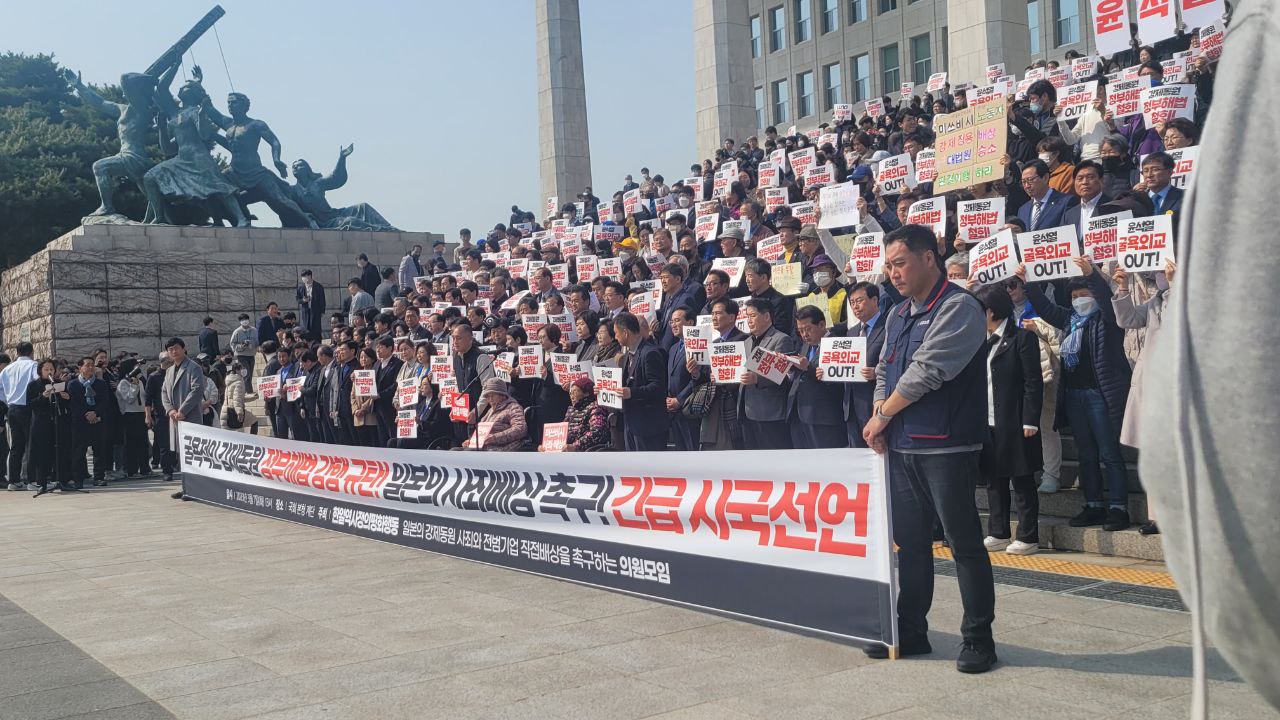 대구여성인권센터 ‘춤신춤왕’, 소수자연대 풍물패 장풍, 이소선 합창단의 연대 공연과 합창단 노래에 맞춰 참여자들 모두가 참여하는 퍼포먼스도 진행했습니다. 10.29 이태원 참사 유가족협의회와 14개국 대사관과 기후위기, 평화 영역의 연대발언이 이어졌습니다.