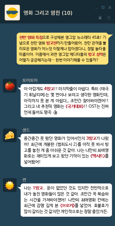 ์ ๊ด๊ฐ์ ๋์ด์๋ฉฐ, ๋ฐฐ์ฐ๋ค์ด 100๋ง ๊ด๊ฐ ๋ณ ๋จ๊ณ ํฅํ ๊ณต์ฝ์ ๊ฑธ๊ธฐ๋ ํ์๋๋ฐ์. 300๋ง ๋ํ ์ ๊ตญ๋ฏผ๋ค ์์์ ์ด์ฌ๋์ค๋ฅผ ์ถ๊ฒ ๋ค๋ ๊ณต์ฝ, 400๋ง์ ๋์ผ๋ฉด ์ํ ์ ์ฃผ์ธ๊ณต๋ค์ด ๋จน๊ธฐ๋ ํ๋ ๊ตญ์๋ฅผ ๊ด๊ฐ๋ค์๊ฒ ์๊ฒ ๋ค๋ ๊ณต์ฝ, 500๋ง ๊ด๊ฐ์ ๋๊ธฐ๋ฉด ๊ดํ๋ฌธ์์ ํธ์์