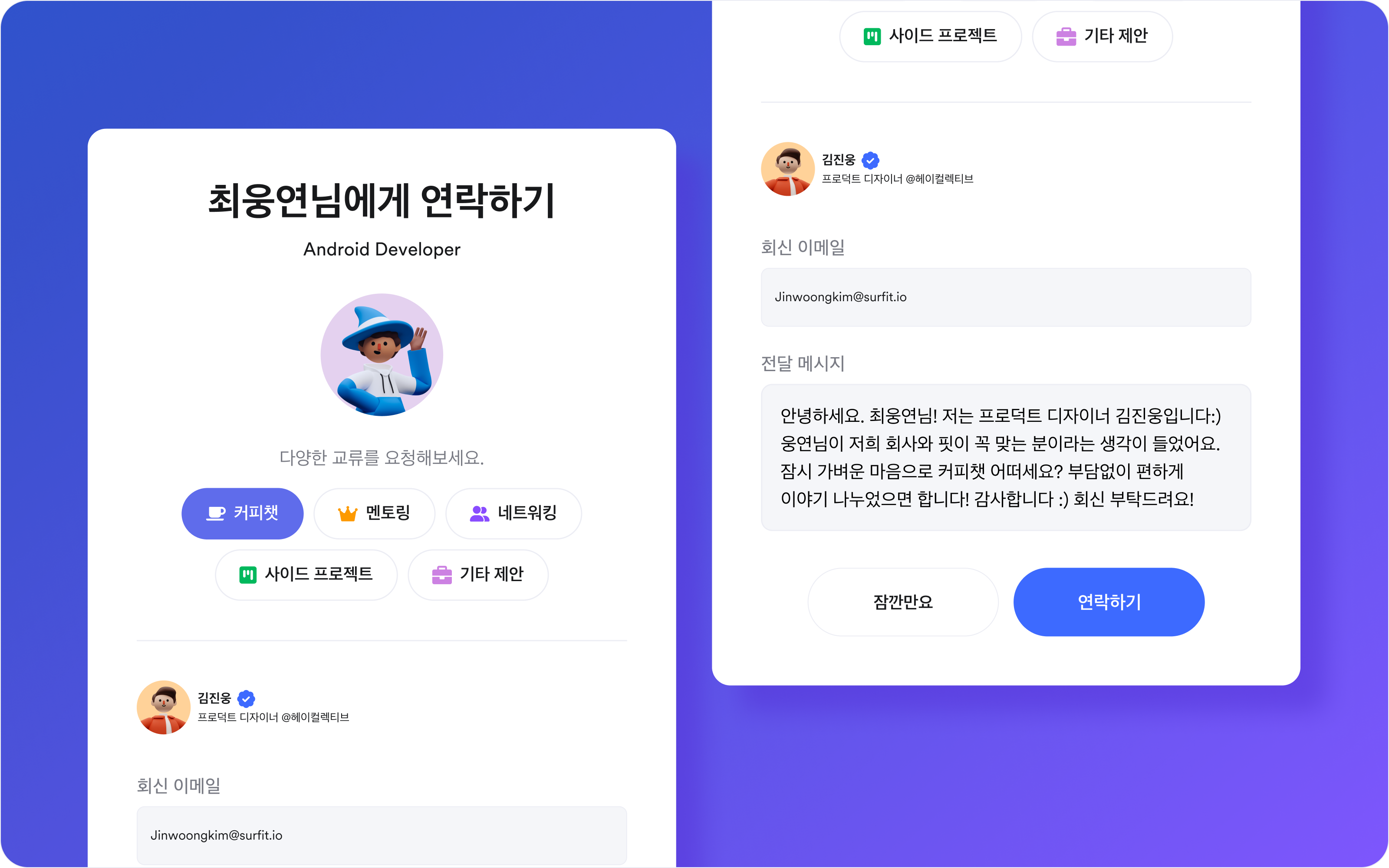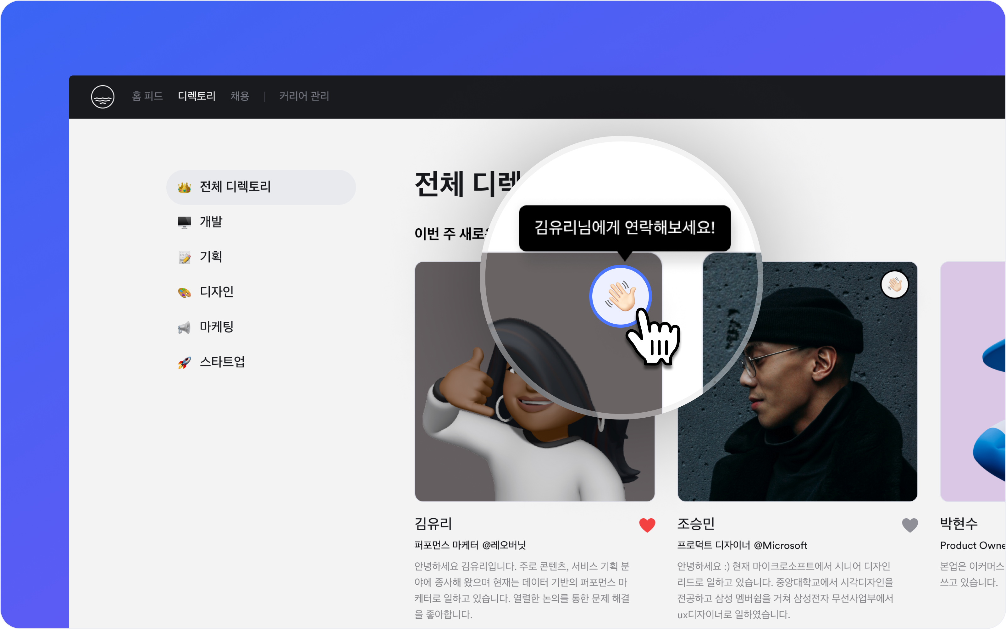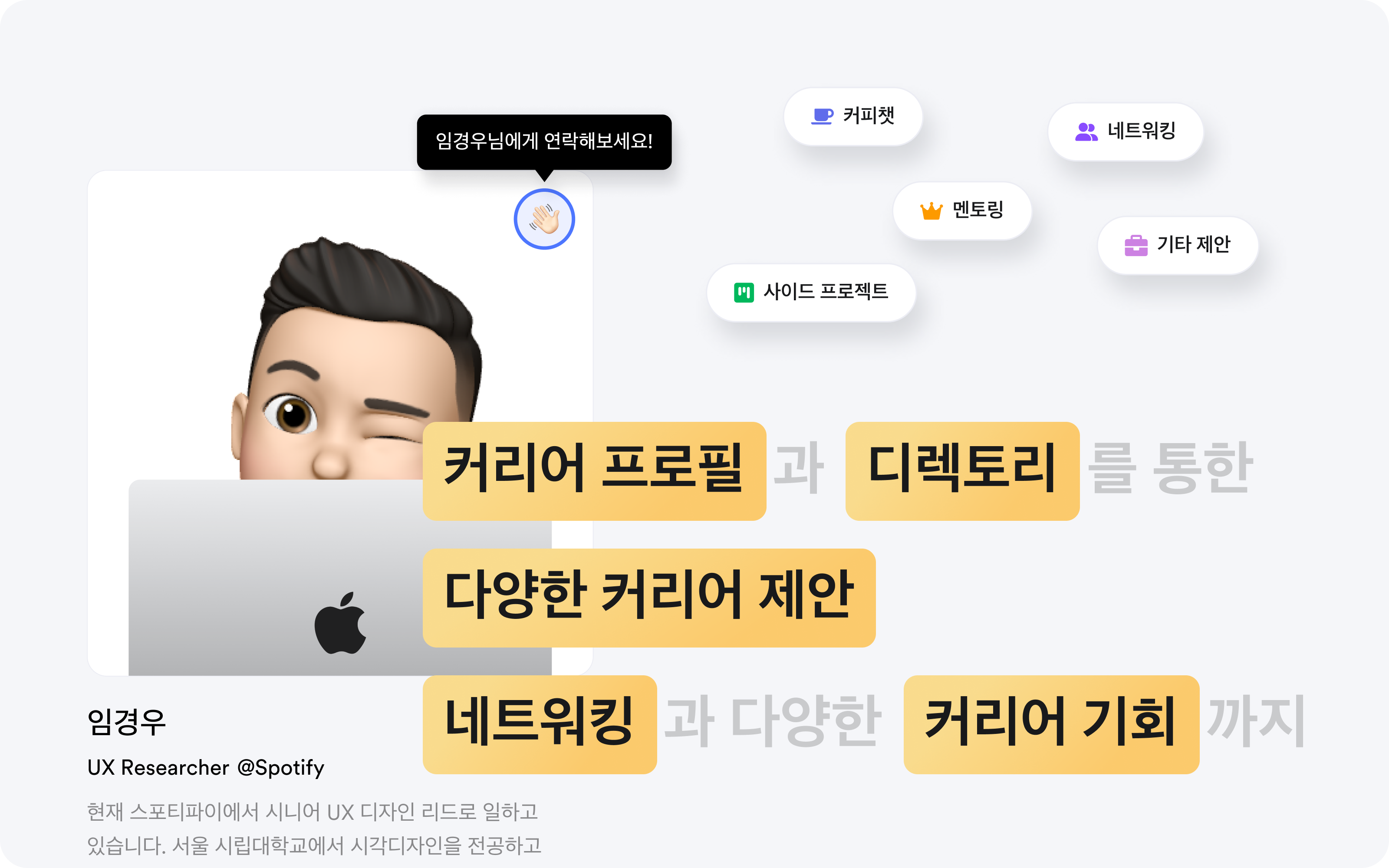 디렉토리와 커리어 프로필에서 👋🏻 연락하기를 찾아보세요.