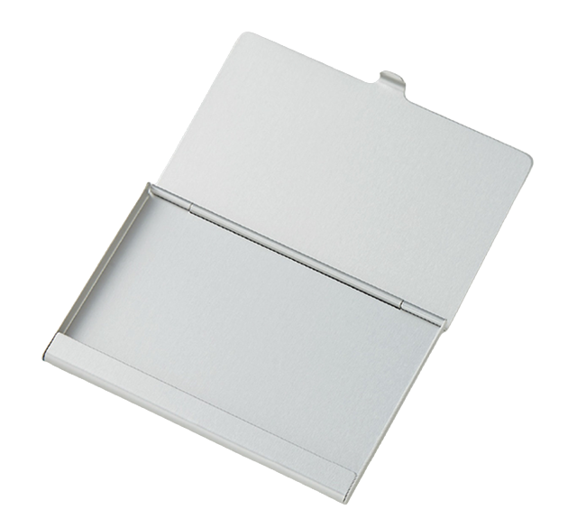 얇고 컴팩트한 사이즈로 명함을 보관하기 알맞은 카드 케이스. 알루미늄 소재로 가벼워 가방이나 주머니에 넣어 다니기 부담 없다. 외부 미팅이나 신분을 소개해야 하는 자리에서 꺼내기 딱 좋다.