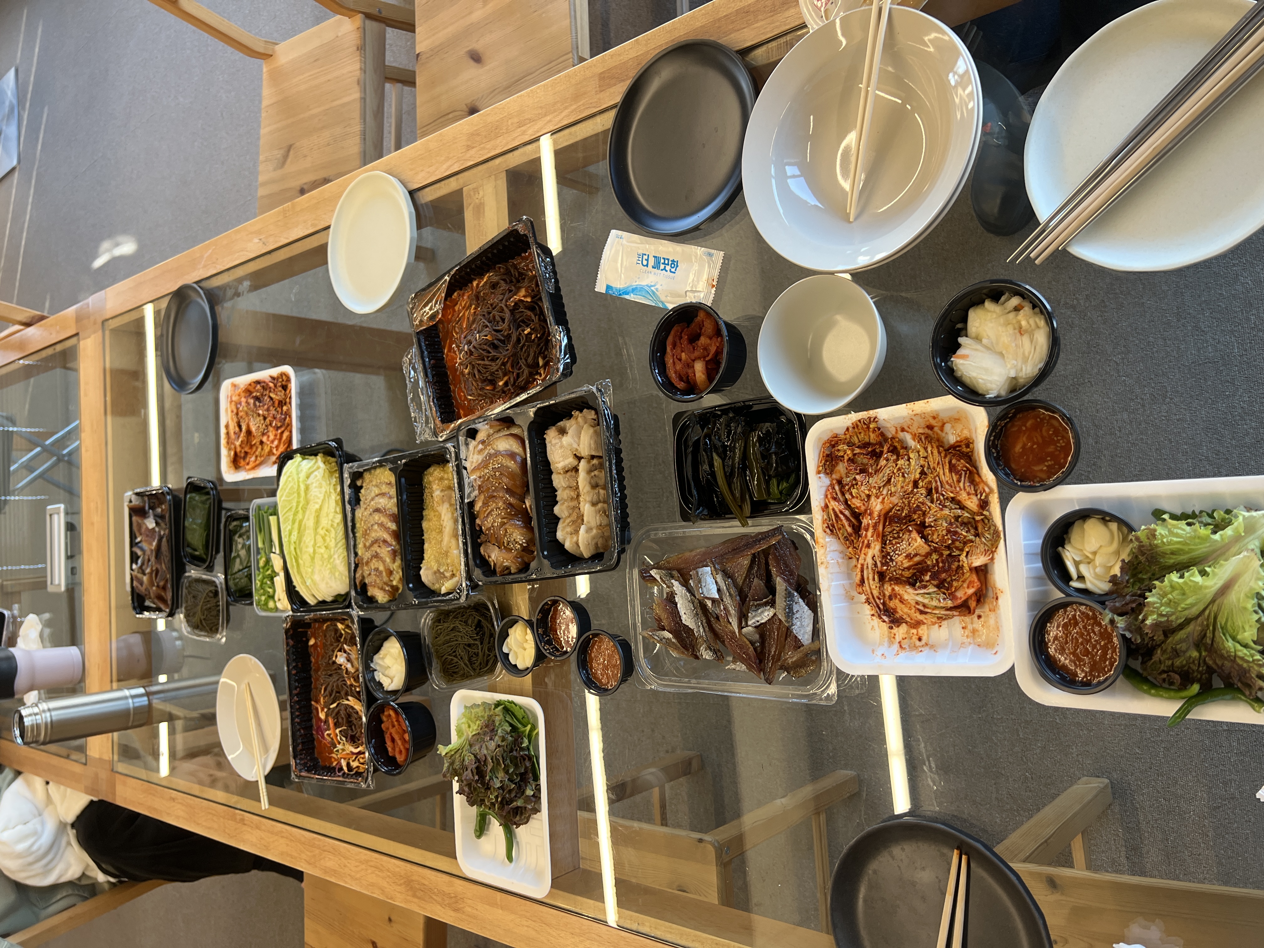 사무실 곳곳에 소개할 만한 공간은 많지만 내 책상 이외에 가장 활용도 높은 회의실을 소개하고 싶다. 이곳은 전에 쓰였던 사우나의 여성 수면실이라고 들었다. 우리는 이곳에서 전체 회의는 물론 팀별 회의, 월마다 진행하는 생일 파티, 이번 겨울에는 과메기를 주문해 다 같이 모여 먹기도 했다. 제품 설명회를 갖기도 하고 날씨가 궂은 날에는 점심을 배달시켜 담소를 나누며 식사하는 공간이기도 하다.🍛 가끔은 소파에 앉아 쉴 때가 있는데, 가만히 앉아 아무 생각 없이 밖을 보고 있다 보면 복잡했던 머릿속도 정리되고 다시금 일할 에너지를 얻곤 한다. |