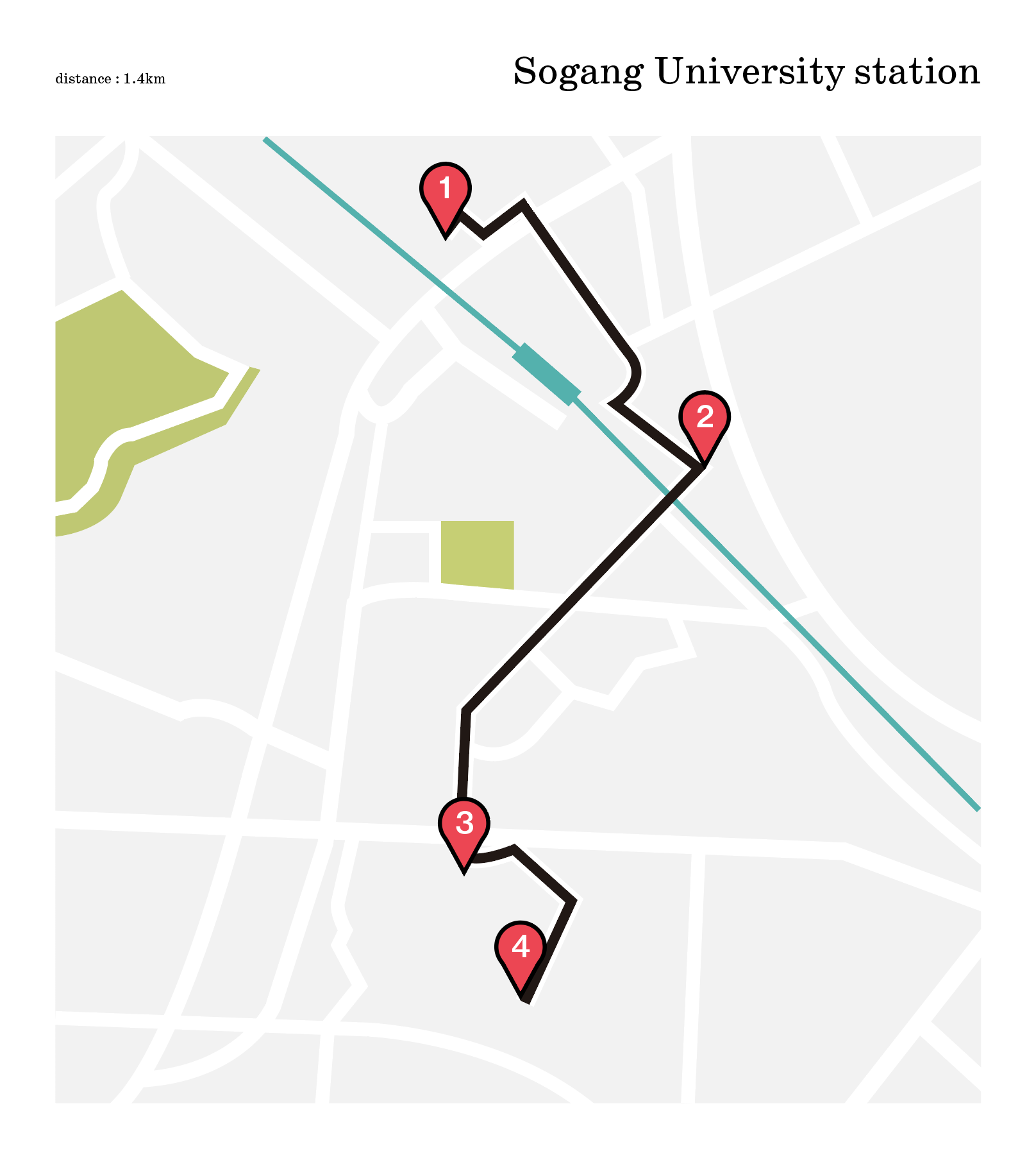 다채로운 문화가 공존하는 서강대역 부근을 걸어보세요.