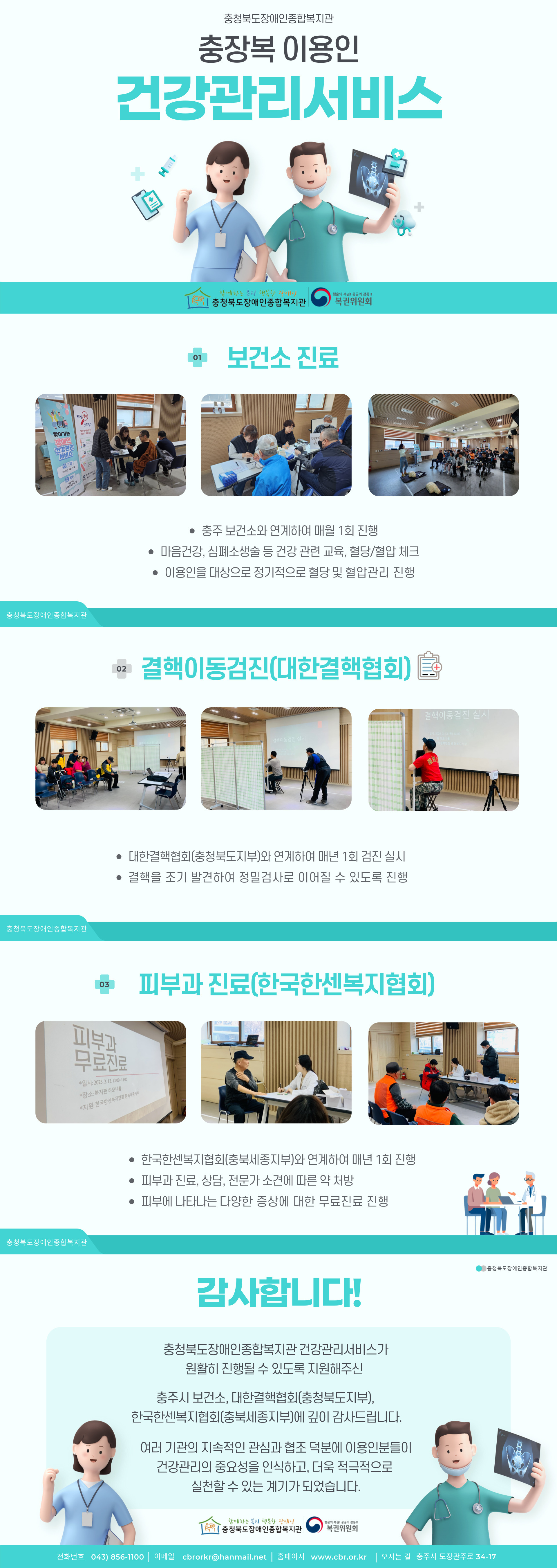 복지관 홈페이지, SNS 및 온도계 바로가기 버튼