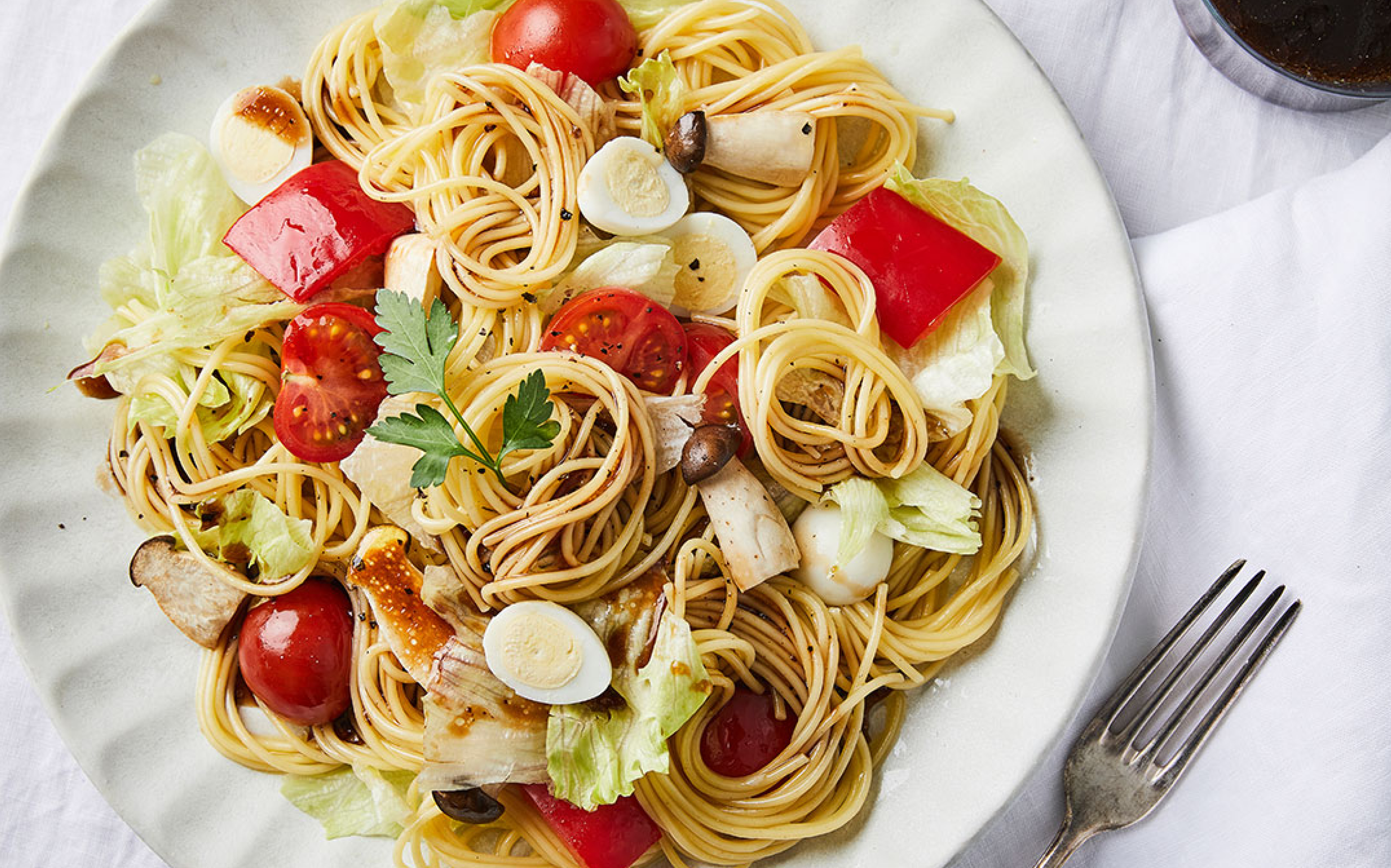 입맛이 돌지 않을 때 샐러드를 곁들인 냉파스타를 요리해 보세요. 접시 위로 오리엔탈 드레싱이나 레드와인 발사믹 드레싱을 얹으면 요리 끝! 쫀득한 파스타 면발과 신선한 샐러드 토핑 사이로 오감을 깨우는 활기찬 향과 새콤상큼한 맛을 더해보세요.