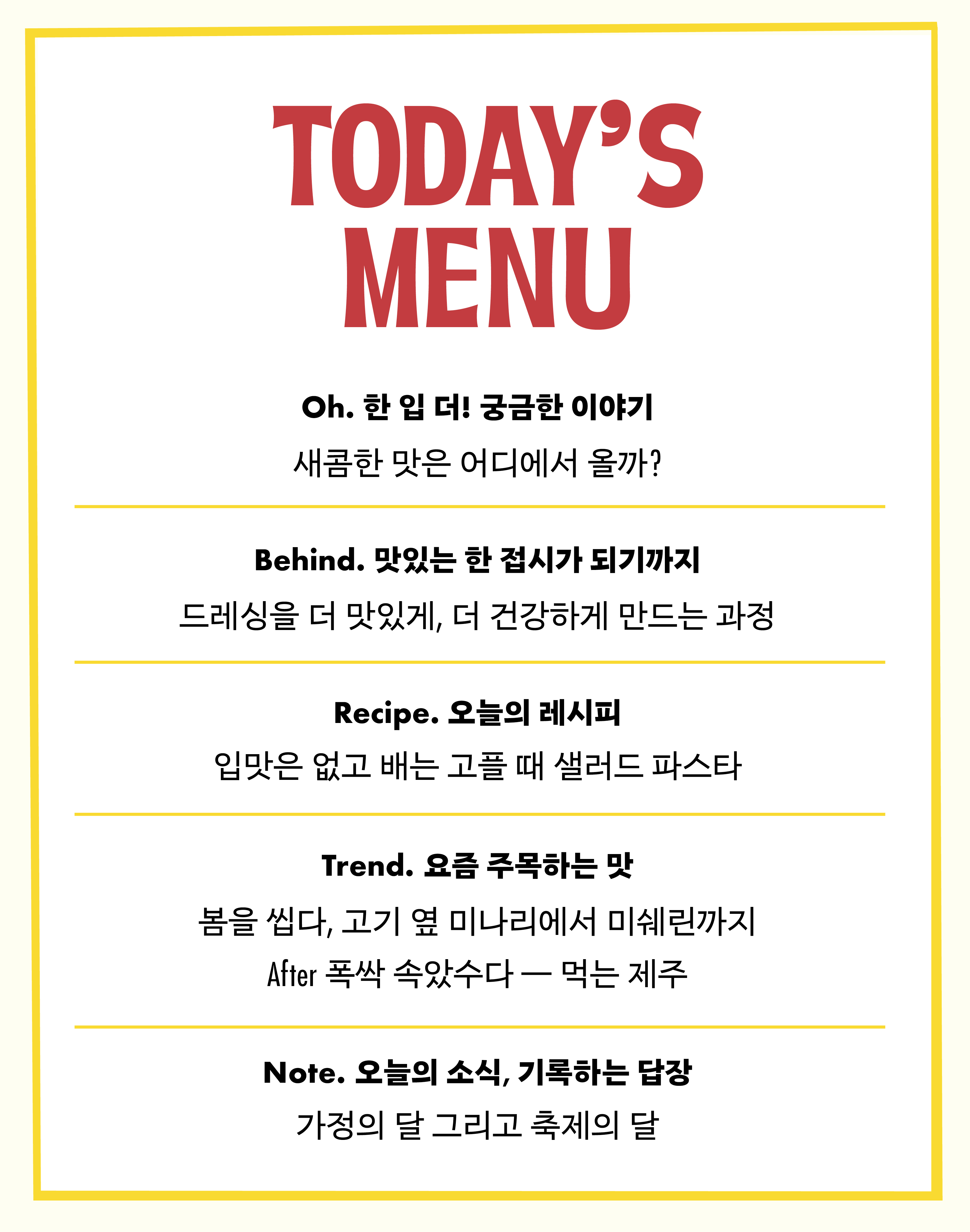 님의 맛있는 하루를 응원하며, ‘New 메일 한 끼’가 전하는 첫 번째 레터, 시작합니다!🍴 |