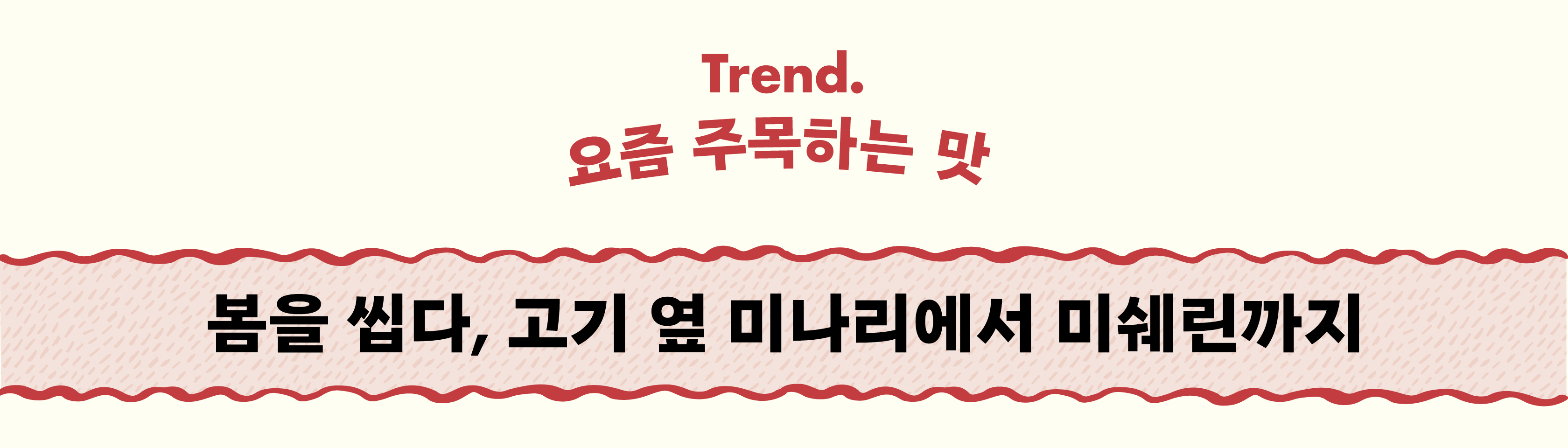 3-4월, 봄이 오면 가장 먼저 입맛을 깨우는 제철 채소 미나리 🌿 예전에는 고기 옆 곁들임으로만 보였다면 요즘은 미쉐린 레스토랑의 주연까지 꿰차며 힙한 K-FOOD 로 떠오르고 있어요.