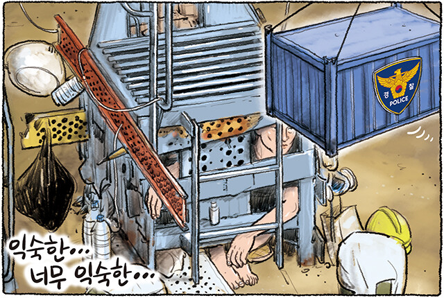 태우 요원: 정부가 노동자 투쟁 현장에 공권력을 투입해 진압한 것은 2011년 충남 아산 유성기업 파업 때가 마지막이었어. 벌써 10년도 전에 있던 일인 거지. 만약 체포영장이 발부되면 정부가 경찰을 투입할 명분이야 생기겠지. 하지만 “공권력 투입하면 다 죽는다”는 조합원의 말이 괜한 이야기가 아니야. 현장이 워낙 위험하기 때문에 경찰도 다칠 수 있어. 현장을 찾았던 노동부 장관과 행안부 장관도 같은 생각을 했기를 바라.