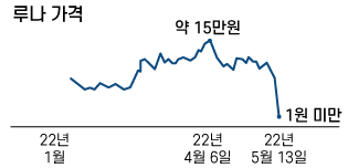 전 세계 주요 암호화폐 거래소는 테라와 루나의 거래를 중단했어요. 국내 주요 거래소들도 마찬가지로 빠르게 거래 중단을 결정했어요. 주식으로 치면 거래소에서 더 이상 거래하지 못하도록 조치하는 ‘상장폐지’를 당한 셈이에요. 약 한 달 전 15만원에 달했던 루나의 가격은 ’1원‘이 채 못 되는 수준까지 폭락했죠.