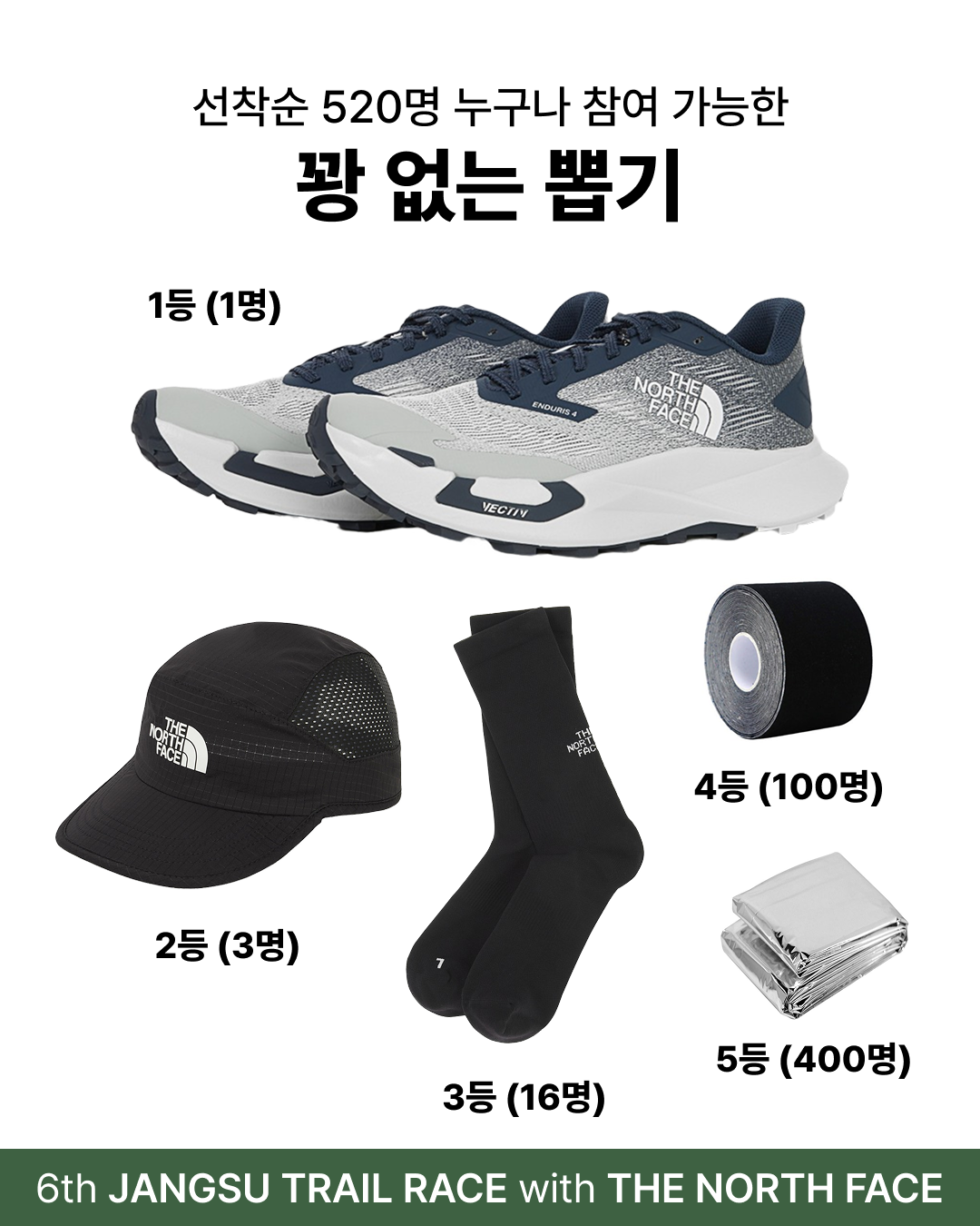 안녕하세요, 트레일러너 여러분! 제6회 장수트레일레이스 with 노스페이스가 이번주에 진행됩니다. 선수 여러분께 최고의 레이스 경험을 선사하기 위해 사전에 꼭 확인해야 할 안내 사항을 준비했습니다. 레이스에 필요한 기존 공지했던 안내 사항들도 한 번 더 담았으니 아래 내용을 꼼꼼히 확인해 주세요. |