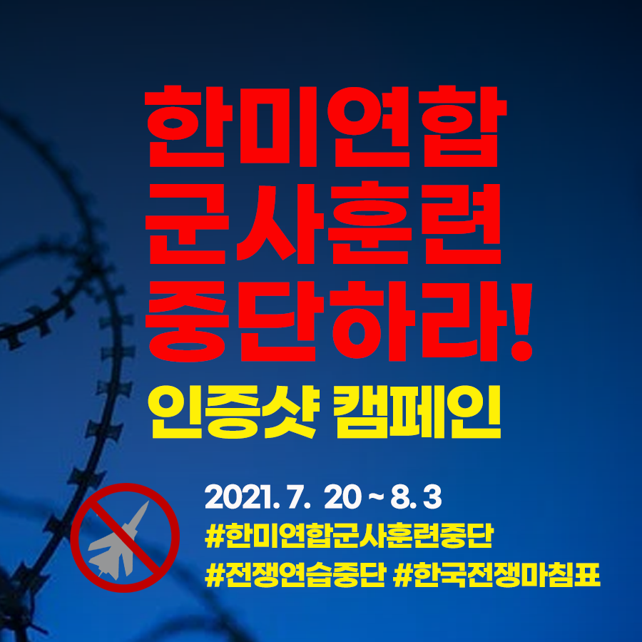 한미연합군사훈련 중단하라! 인증샷을 올려주세요 오는 8월 예정된 한미연합군사훈련에 반대하는 평화의 인증샷을 올려주세요! 적개심을 조장하는 전쟁연습으로는 평화를 이룰 수 없습니다. 남북, 북미간 신뢰를 회복하는 길은 전쟁연습을 중단하고 대화를 재개하는 것입니다. 이제 평화를 훈련합시다! 함 께 하 는 방 법 🙏 1. 인증샷을 찍어주세요.😀 영문 참여 링크도 보내드립니다. 알고 계신 국제 네트워크에 공유해주세요! 한국기독교교회협의회(NCCK) kncc@kncc.or.kr 서울특별시 종로구 대학로19 한국기독교회관 706호 (우:03129) 02-742-8981 수신거부 Unsubscribe |