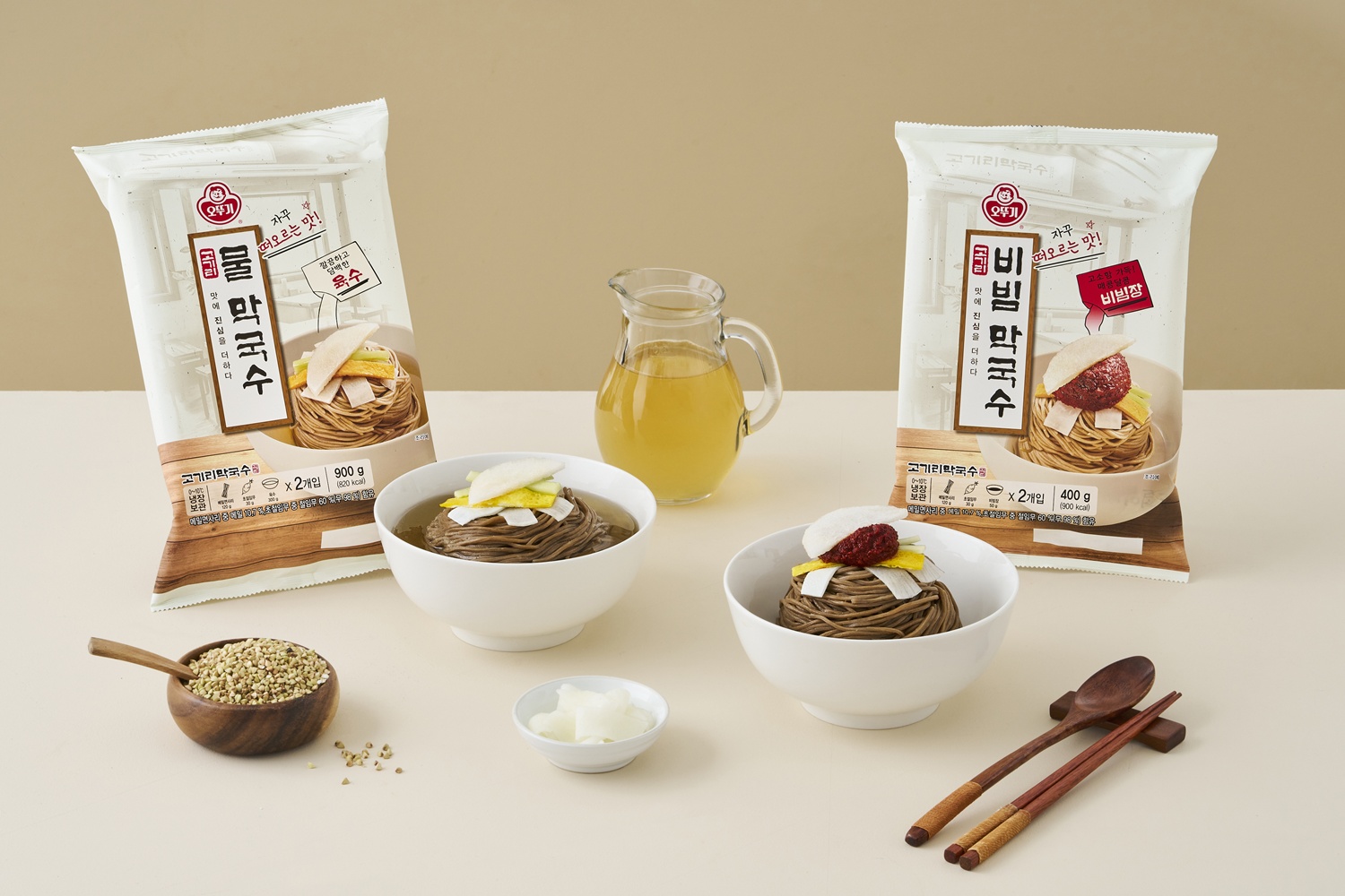 이번에 오뚜기와 함께 선보인 물 막국수와 비빔 막국수는 기존 들기름 막국수와 비교하면 어떤 변화가 있었나요?