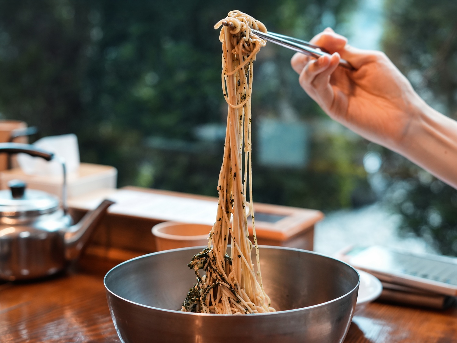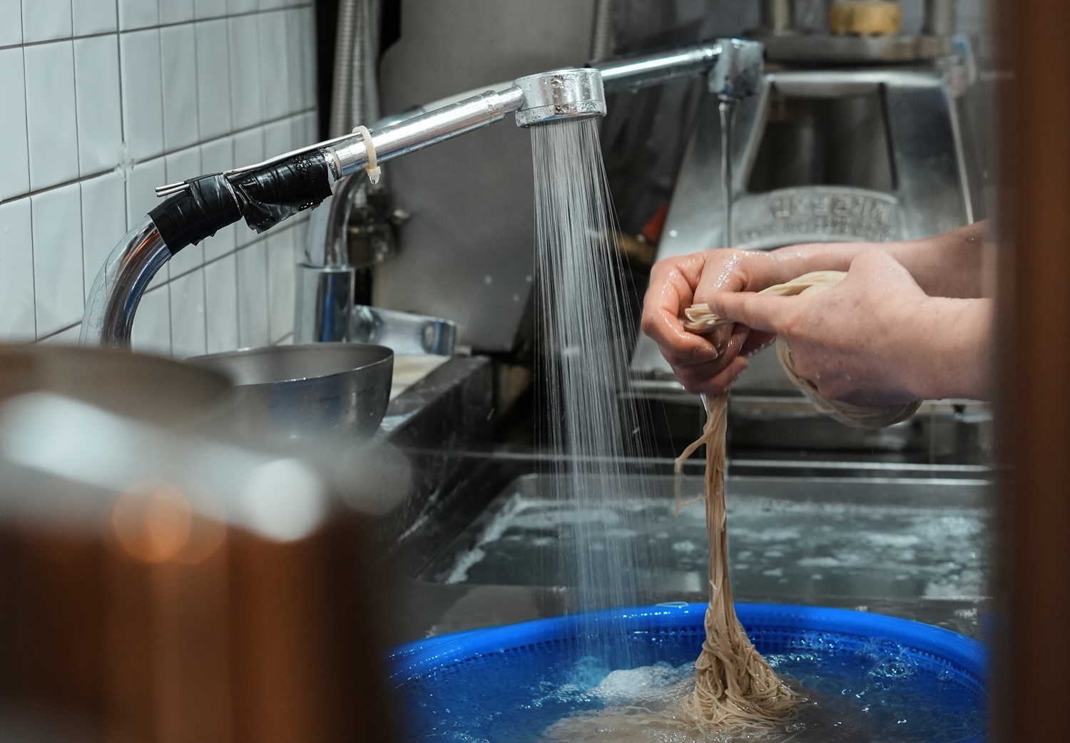 그렇게 말씀해 주시니 감사해요. 실제로 저희 주방은 ‘ㄴ’자 구조예요. 면을 삶고 씻어내고, 동그랗게 말아 그릇에 담고, 그 위에 고명을 올리는 흐름이 자연스럽게 이어지도록 구성되어 있어요. 그래야 조리 과정의 질서와 의도가 흐트러지지 않죠. |