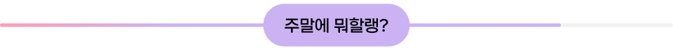 ๋ด ์ฃผ๋ง์ ๋ค์ฑ๋กญ๊ฒ ํด์ค ๋ ๋ง์ ์์์ด ๊ถ๊ธํ๋ค๋ฉด? โ์ฃผ๋งํ ๋ฆฌโ๋ก ์ง๊ธ ๋ฐ๋ก ๋๋ฌ๊ฐ๋ด์! |