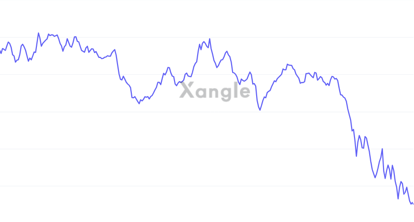 한국 가상자산 전날 대비 5.40% 하락 지난 주 대비 9.78% 하락 |
